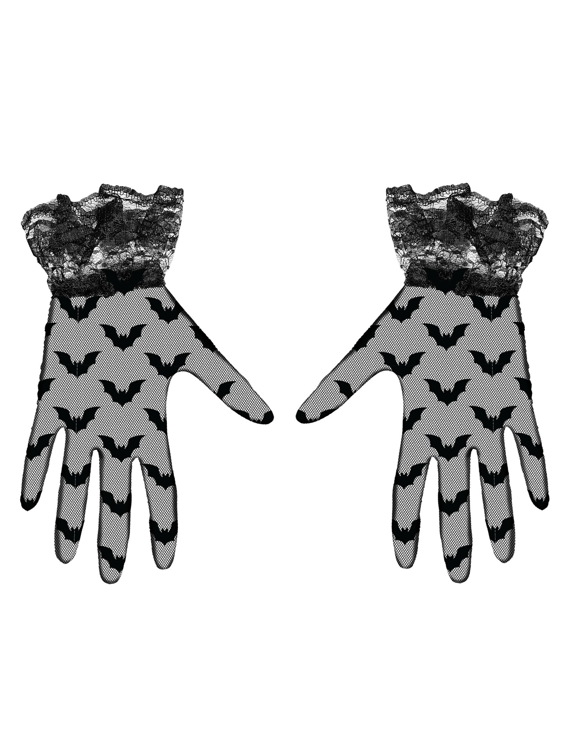 Ces gants courts sont réalisés dans un voile noir léger, décoré de motifs de chauve-souris pour un style résolument gothique. Une dentelle froncée au poignet ajoute une finition délicate, parfaite pour les tenues à l’allure obscure.