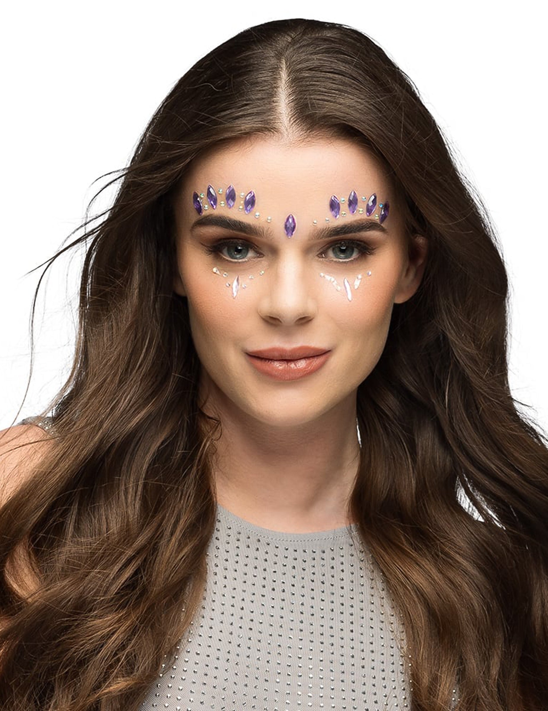 Te vijolični samolepilni okrasni kamni Ti izdelki za ličenje za odrasle spremenijo vaš obraz v resnično bleščeč dragulj. Njihova intenzivna barva in sijaj lovita svetlobo za čaroben učinek, idealen za poudarjanje ličil za zabavo.