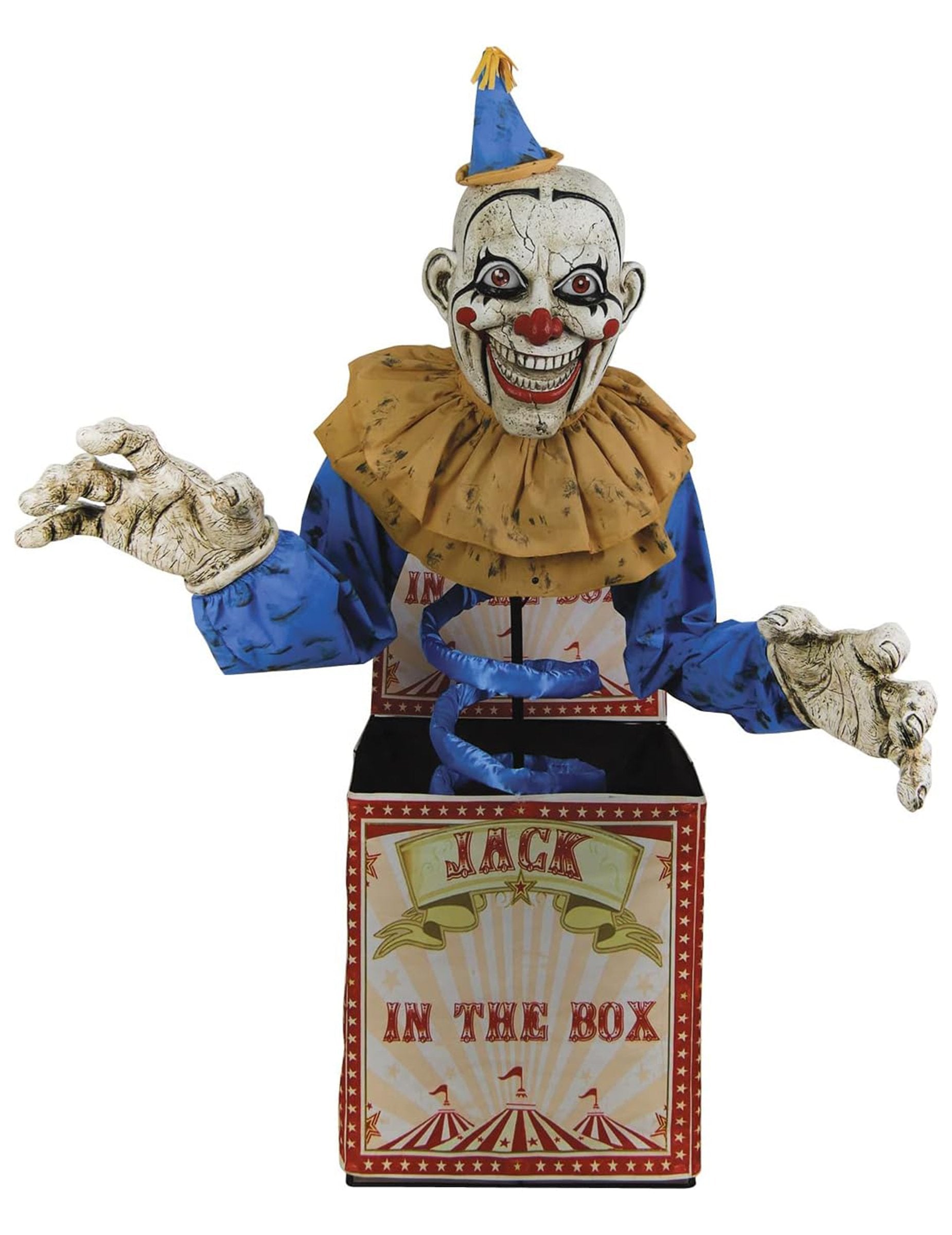 Potopite se v grozo s tem Jackom v škatli 180 animirani klovnski okras cm, Osrednji del tako presenetljivega, kot je zastrašujoče, da svoj prostor spremenite v resničen prizor nočne more. Ta velikanski klovn, ki izhaja iz njegove škatle, takoj privabi vse oči s svojim grimanim obrazom, barvitim kostumom in hladnim smehom. Klovn govori in se smeji, medtem ko se mu čeljust odpira in zapre ritem njegovih besed. Oči se na trenutke prižgejo in utripajo, kar krepi njegov macabre videz. Zamahne od leve proti desni, zaradi česar je njegova prisotnost še bolj moteča. Ta animirani dekor deluje na omrežni vtičnici AC 220-240V, idealno za neprekinjene animacije med najbolj potopnimi nastavitvami čarovnic.