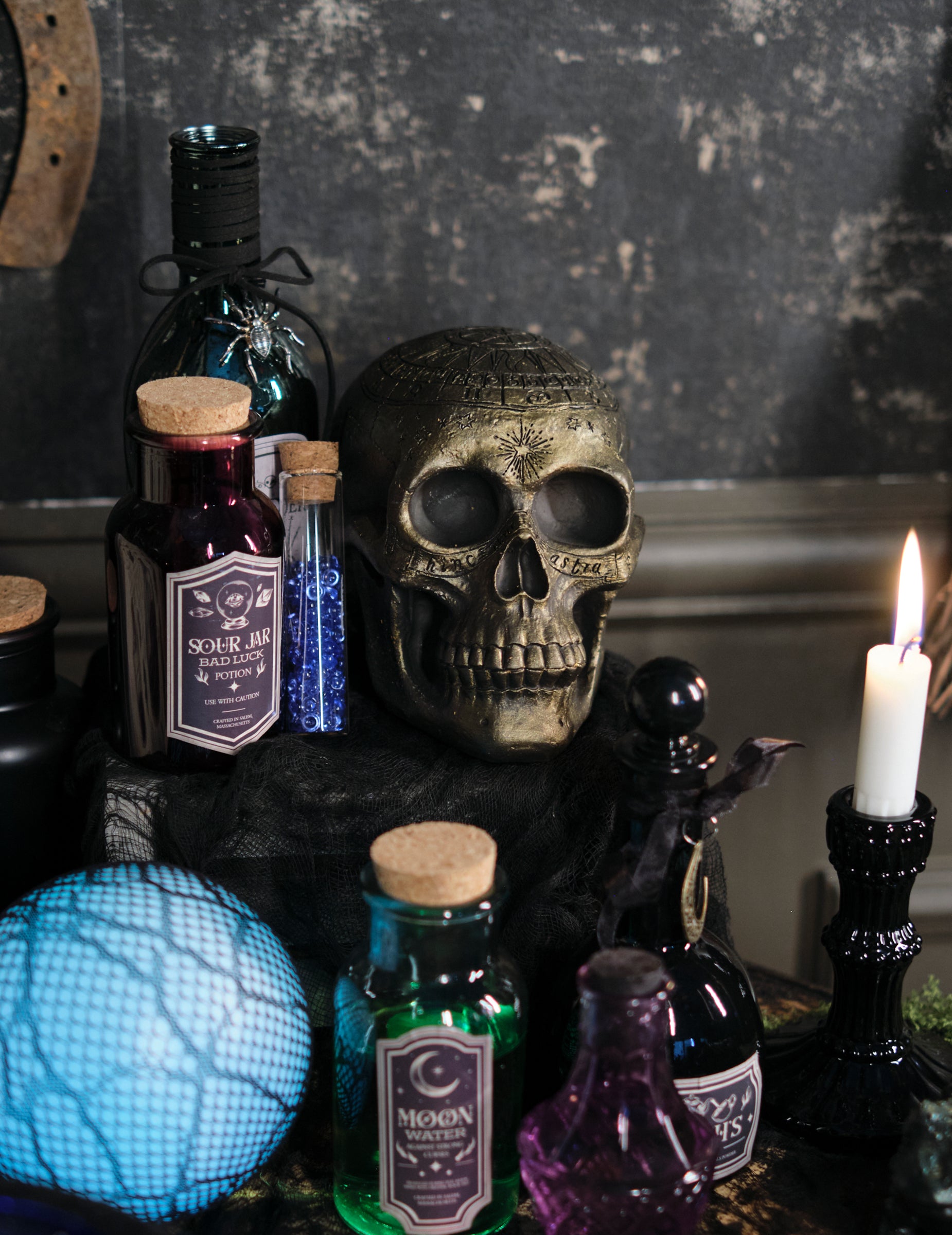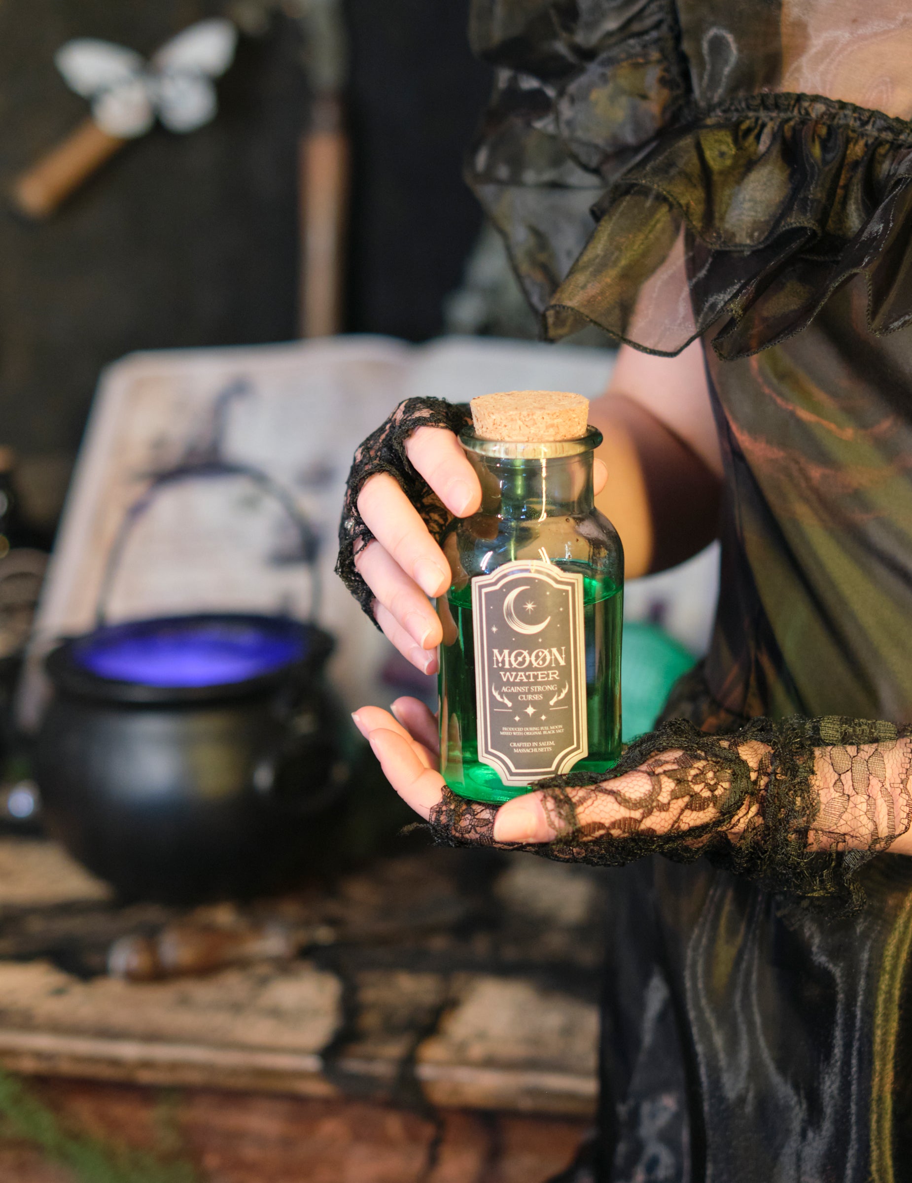 Ta zelena steklena viala "Moon Water" 13,5 cm zapeljan s svojim čarobnim in nebesnim slogom. Oblečen z dekorativno lunarno etiketo in zaprto s plutovinskim zamaškom, gre odlično z dekorjem, ki ga navdihujejo starodavni rituali. Hvala kompaktnemu 6.5 cm Širok, svoje mesto najde v nastavitvi za noč čarovnic, ki jih navdihujejo zvezde.