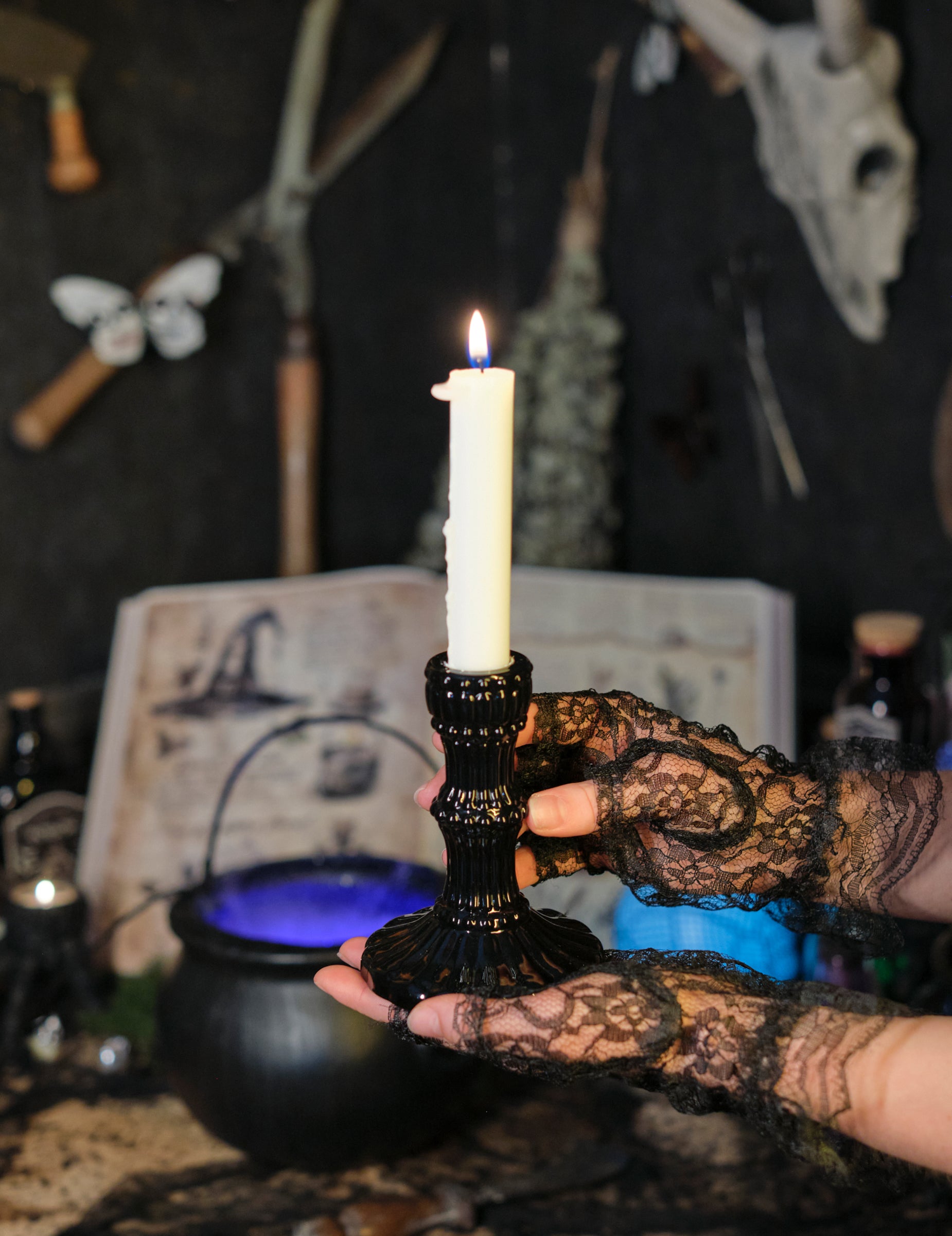 To držalo za sveče iz črnega stekla meri 12 cm in zlahka sprejme svečo z baklo. Njegova izpopolnjena oblika, poudarjena z globokim toniranim steklom, je dekorativni predmet z znakom, kot nalašč za vaše zaslone za noč čarovnic. Nameščena na mizi, polici ali koščku pohištva, razprši temno in rafinirano vzdušje.