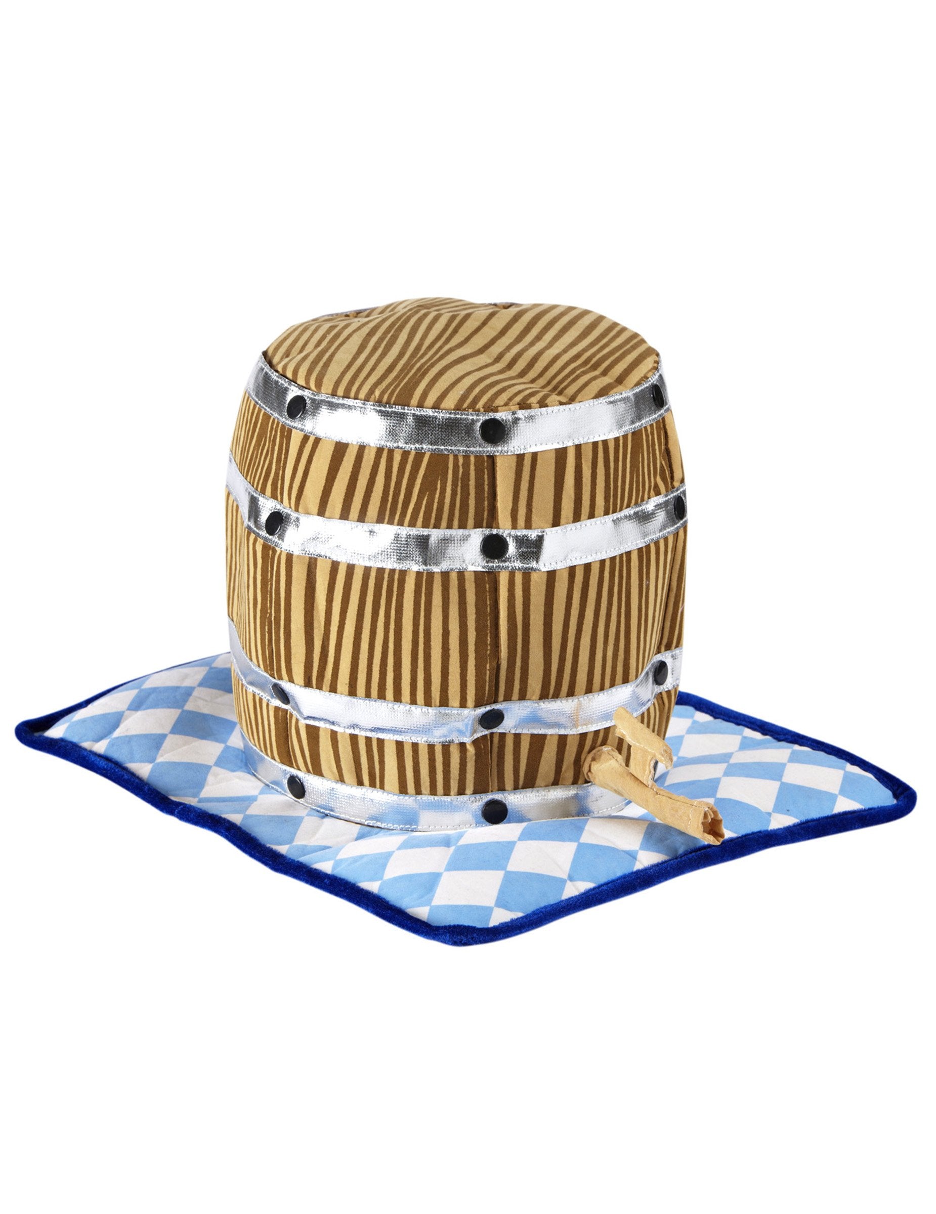 Ce chapeau tonneau de bière bavarois pour adulte affiche un look à la fois festif et décalé, parfait pour faire sensation lors de la fête de la bière ! Sa forme haute imite un tonneau de bière en bois cerclé de bandes grises, créant un effet visuel surprenant et amusant. La base est ornée d’un large rebord aux motifs bleus et blancs évoquant fièrement les couleurs traditionnelles de la Bavière. Un petit détail en forme de robinet vient parfaire l’illusion du fût de bière, pour un effet comique garanti. Ce chapeau à l’esprit convivial et joyeux s’accordera à merveille avec une tenue à carreaux ou une salopette de fête pour renforcer l’ambiance. Idéal pour trinquer avec style entre amis !