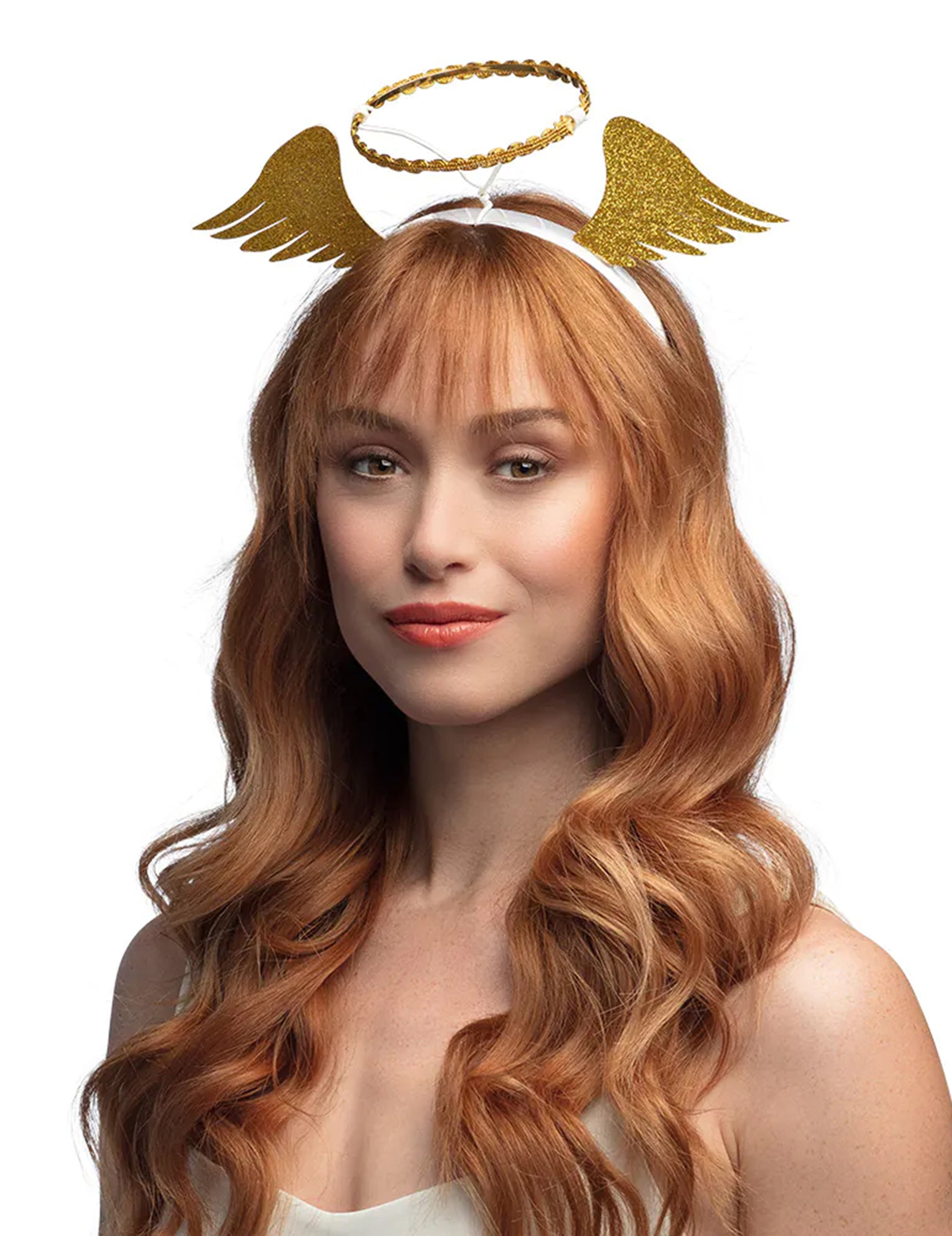 Complétez votre tenue avec ce serre-tête ailes et auréole d’ange dorés pour adulte ! Sur un arceau discret, deux ailes scintillantes encadrent une auréole dorée montée sur tige, qui flotte au-dessus de la tête pour un effet féerique. Léger et confortable, cet accessoire apporte une touche lumineuse et céleste à vos tenues festives. Parfait pour les fêtes de Noël, les spectacles costumés ou les soirées déguisées.