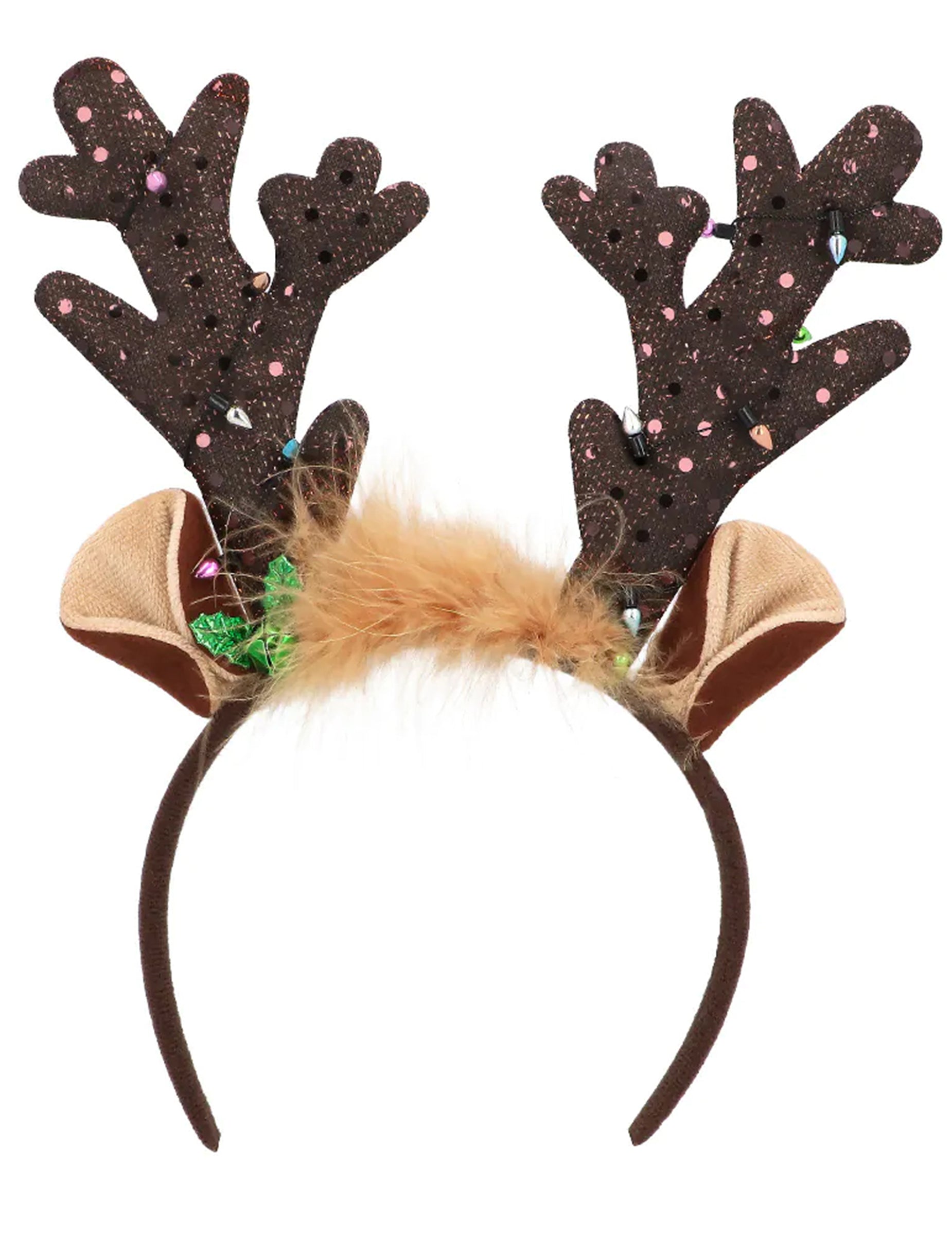 Affichez un style festif avec ce serre-tête renne de Noël brillant à guirlande ! Avec ses bois pailletés marron, ses petites oreilles dorées et sa guirlande intégrée aux reflets lumineux, il transforme n’importe quelle tenue en une apparition joyeuse et amusante. Un voile de plumes marron clair accentue la touche douce et fantaisie de cet accessoire. Parfait pour les repas de Noël, les animations hivernales ou les soirées à thème.