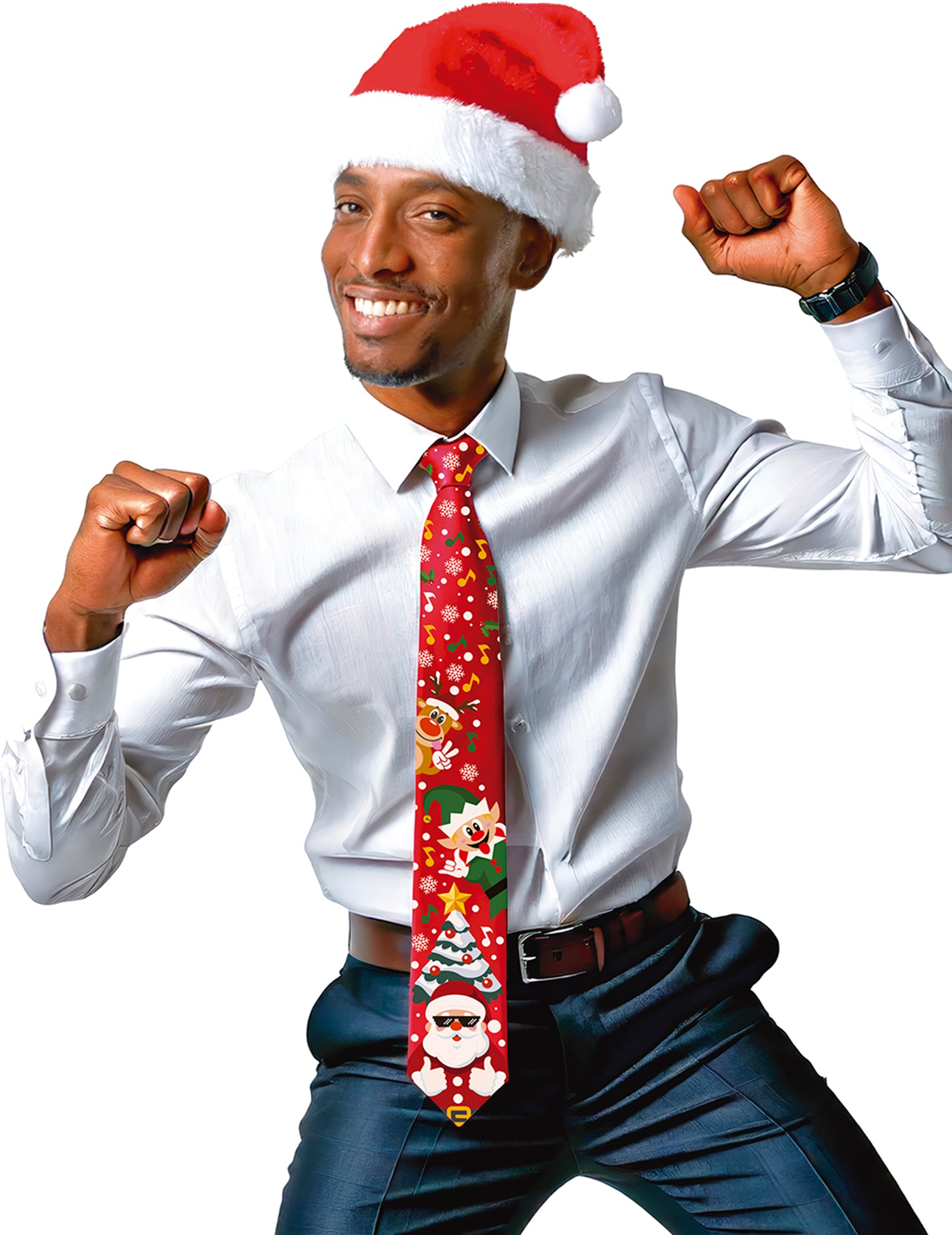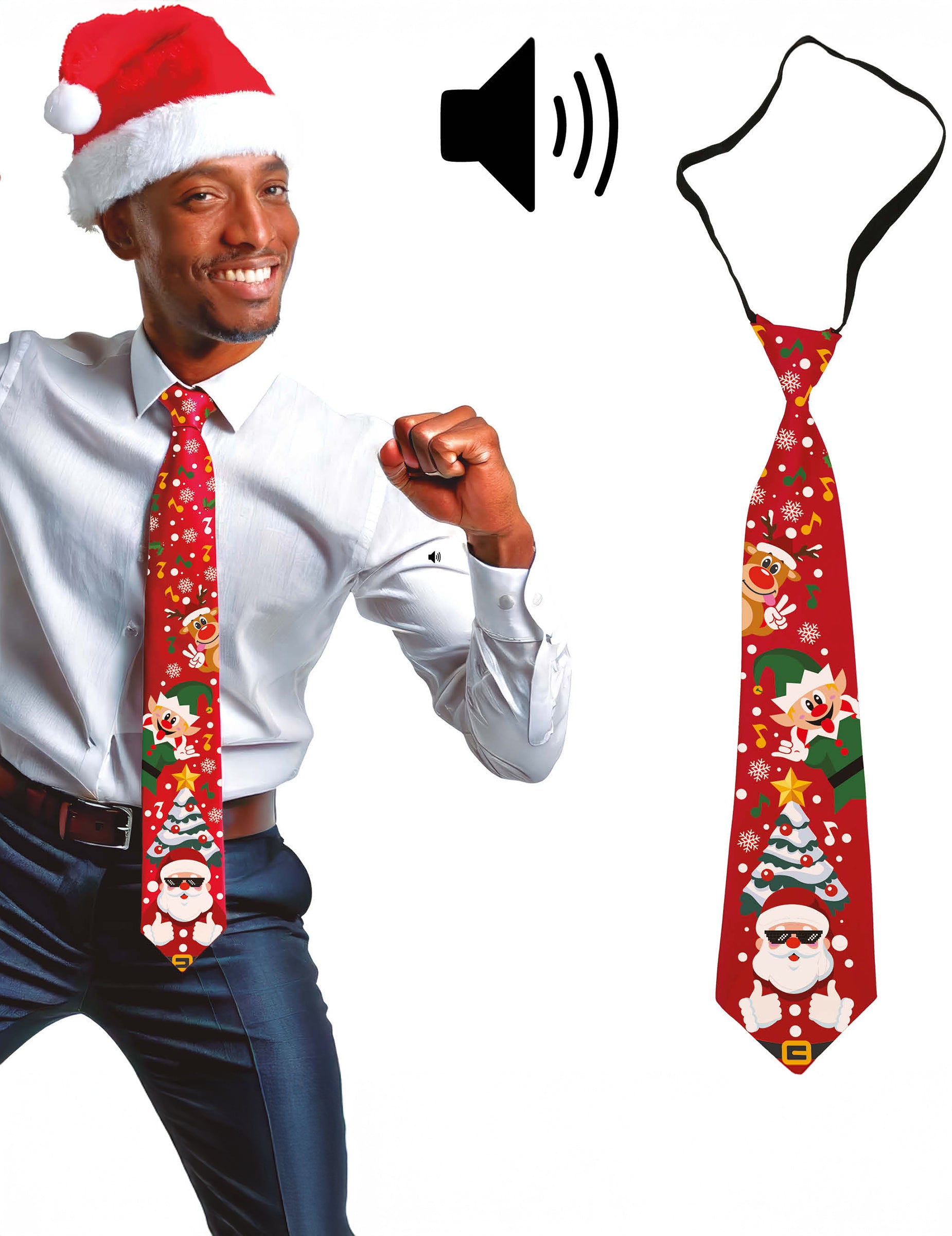 Okrašena je z veselimi motivi, kot so Božiček, škrat in božično drevo, ter se enostavno pritrdi z elastiko v črni barvi. Vsebuje gumb, ki sproži božično melodijo za zagotovljen presenečen učinek. Zabaven dodatak za nasmeh na obrazu vaših bližnjih in pravo praznično vzdušje.