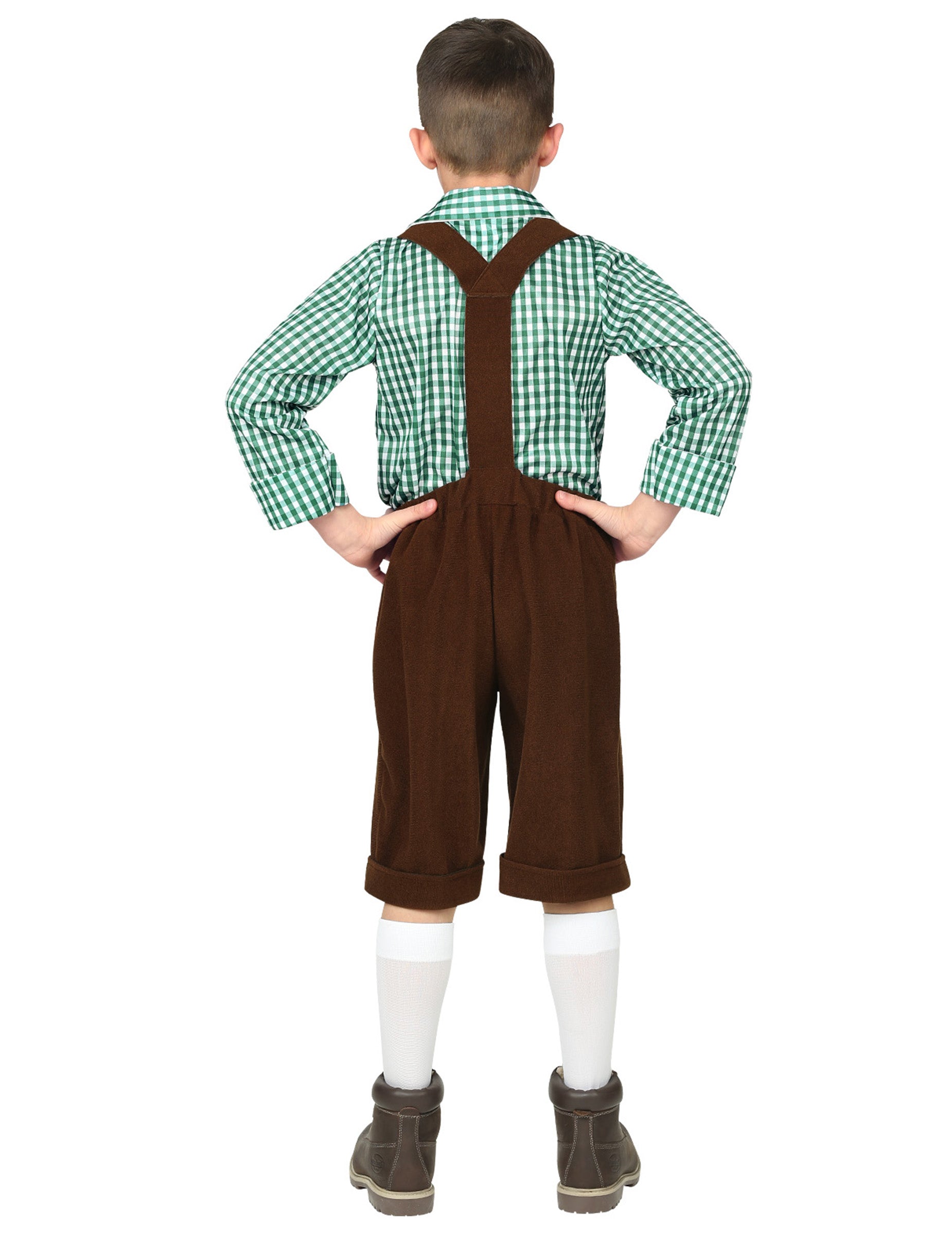 Ce costume bavarois vert pour enfant associe une chemise à carreaux verts et blancs à une salopette marron décorée de motifs floraux brodés. Inspiré des tenues typiques de Bavière, il apporte une touche folklorique et festive. Parfait pour un défilé de carnaval, un spectacle ou une fête régionale, ce déguisement allie style traditionnel et confort pour que les enfants profitent pleinement de l’événement.