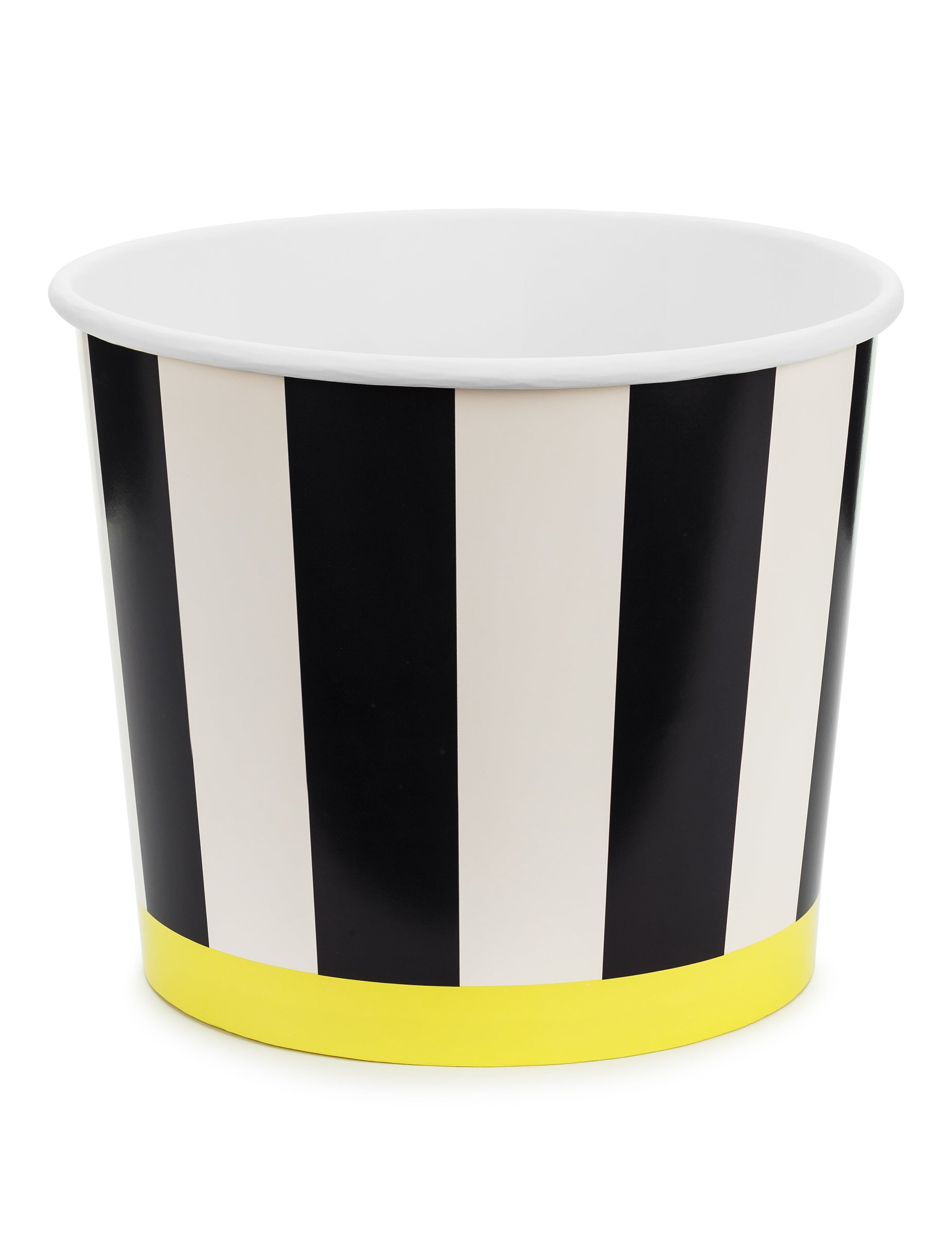 Ce lot se compose de deux seaux en papier décorés de larges bandes verticales noires et blanches, soulignées par un bord inférieur jaune éclatant. Mesurant environ 14 cm de haut et 13 à 16,5 cm de diamètre, ils conviennent parfaitement pour accueillir pop-corn, friandises ou biscuits. Pratiques et esthétiques, ils s’intègrent facilement dans une décoration de fête, un buffet d’anniversaire ou une soirée à thème cinéma, tout en ajoutant une note élégante et originale.