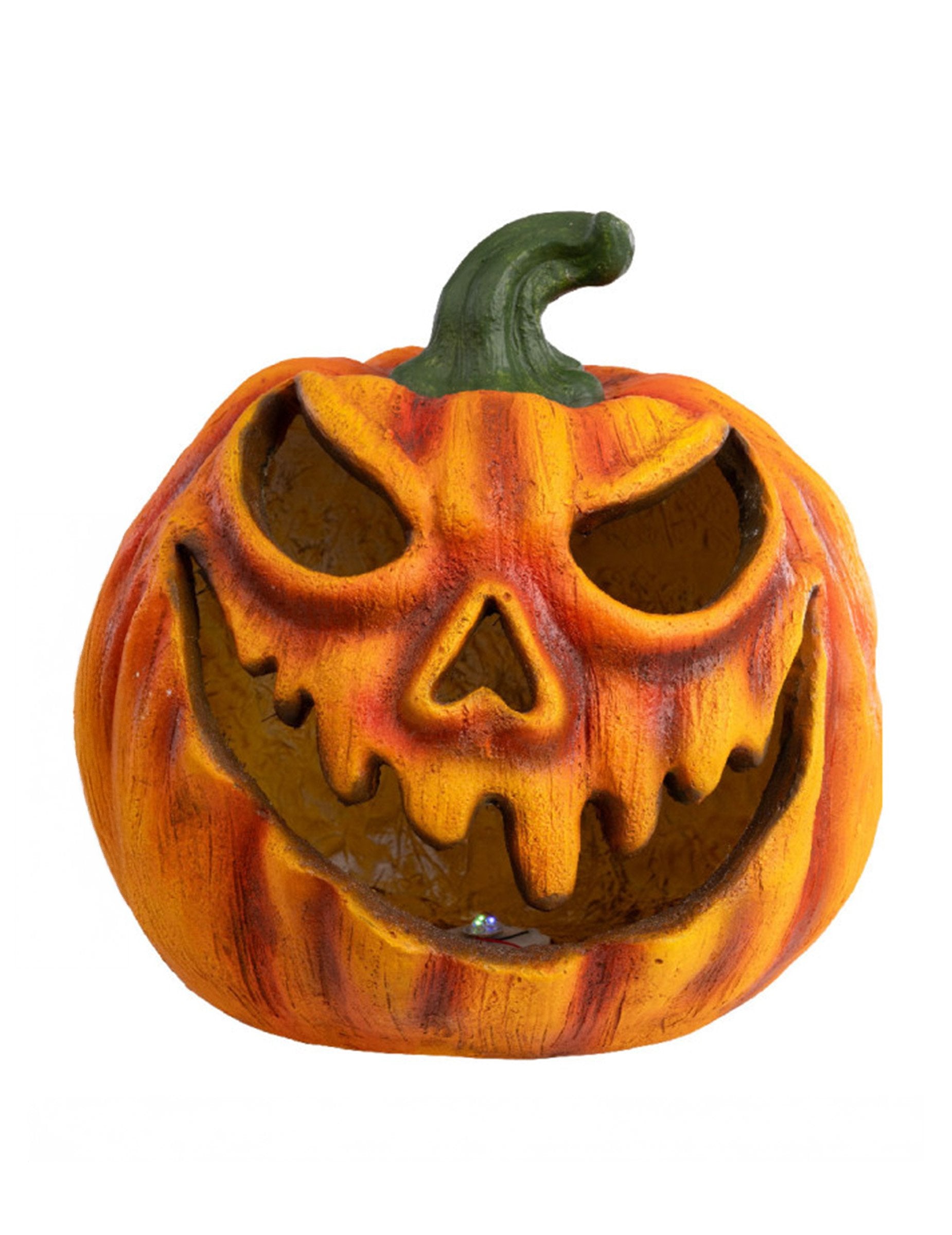 Dodajte svojemu dekorju pridih hladu s to 33 cm veliko svetlečo oranžno bučo cm. Njegov grozeči izraz žari z nenavadno svetlobo, kar je idealno za popestritev vaših okraskov tako v zaprtih prostorih kot na prostem pod streho. Nepogrešljiv dodatek za uspešno zabavo za noč čarovnic.