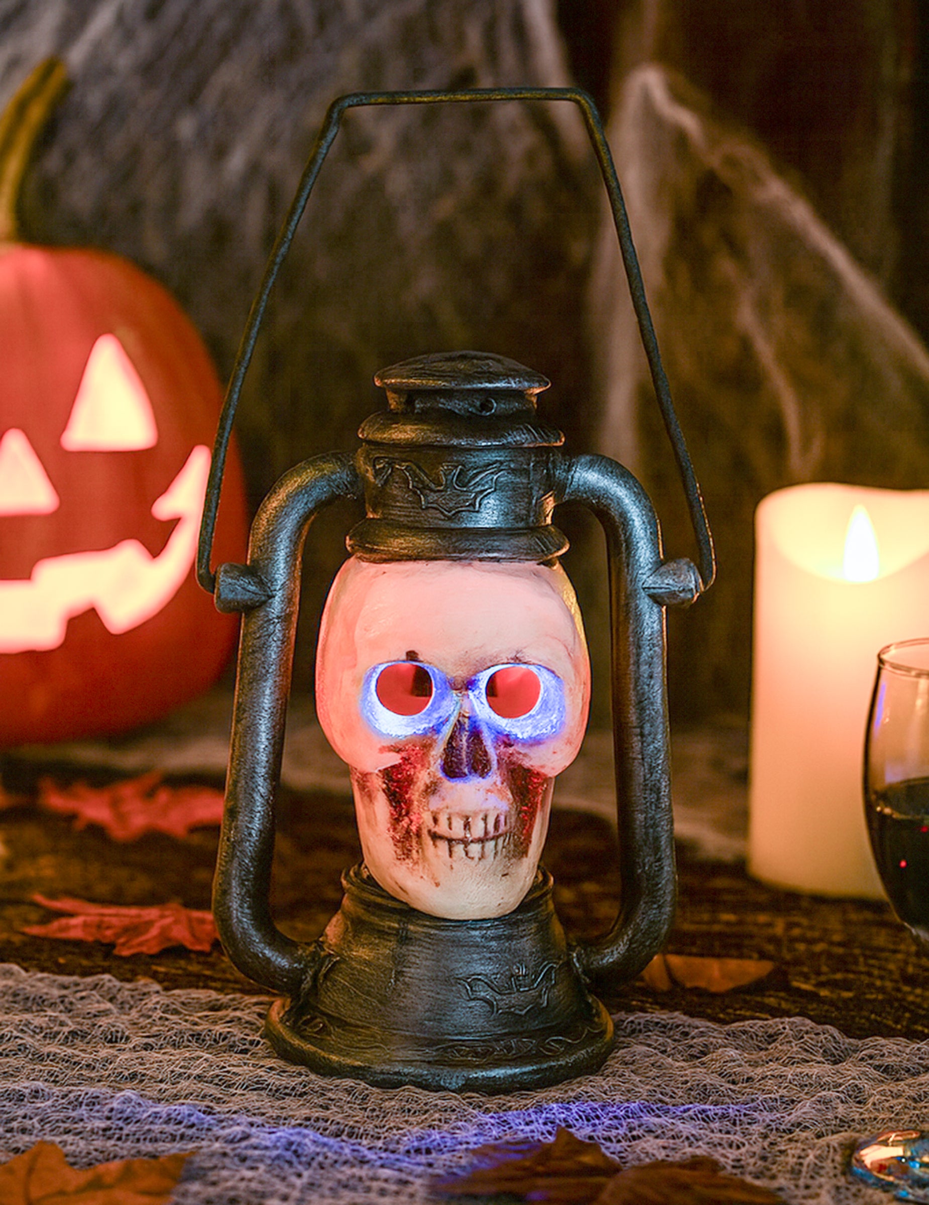 S to realistično zasnovanim lučjo lobanje prinesite grozljiv ambient v svoj dekor. Njegova grozljiva lobanja se prižge v treh spreminjajočih se barvah, kar ustvarja skrivnosten in mrzli učinek. Praktičen in lahek, ga zlahka prevažata zaradi ročaja in meri približno 26 x 18 cm. Idealno za spremljanje preganjane hiše, vrt za noč čarovnic ali za dokončanje strašljive preobleke.