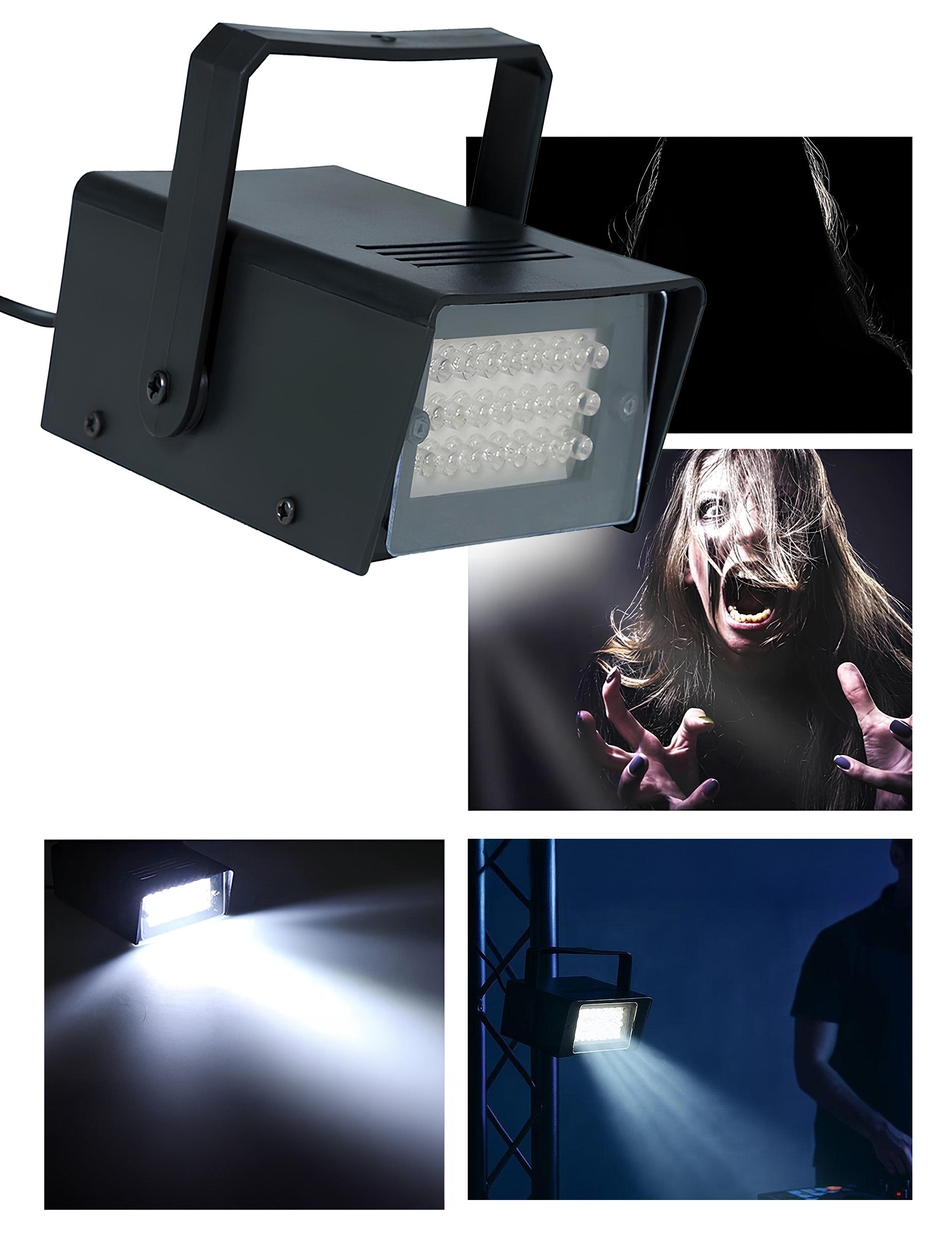 Ce projecteur stroboscopique 35w crée une lumière blanche intense en flash, idéale pour accentuer l’effet visuel d’une piste de danse ou d’un décor immersif. Il produit une séquence lumineuse rapide et répétée, parfaite pour accompagner vos sons, mouvements ou scènes à effet. Grâce à sa structure compacte avec poignée intégrée, il se fixe facilement sur un mur ou un support. Un accessoire de choix pour vos spectacles, décors d’horreur ou soirées animées telle qu'halloween.