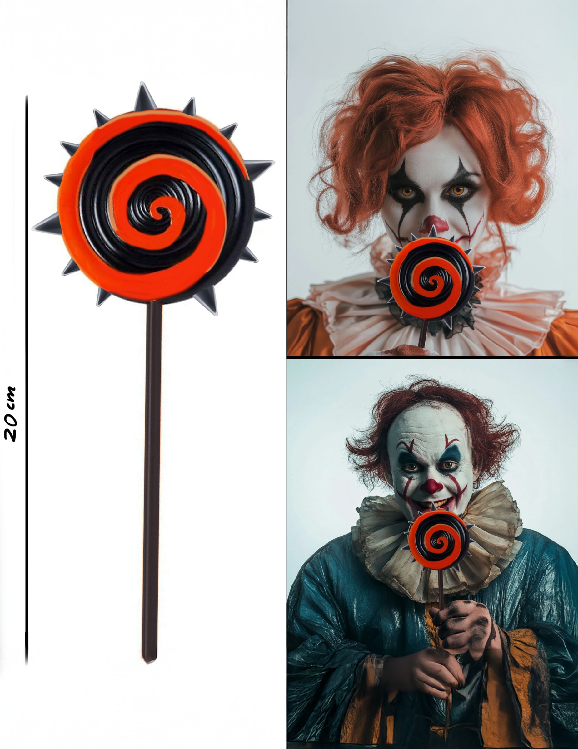 Apportez une touche effrayante à votre déguisement avec cette sucette horrifique de 20 cm. Avec son design en spirale rouge et noir et ses faux pics menaçants, elle mélange l’apparence d’une friandise avec une allure cauchemardesque. Parfaite pour Halloween, le carnaval, une soirée déguisée ou un spectacle, elle complète idéalement un costume de monstre, de clown maléfique ou de créature démoniaque.