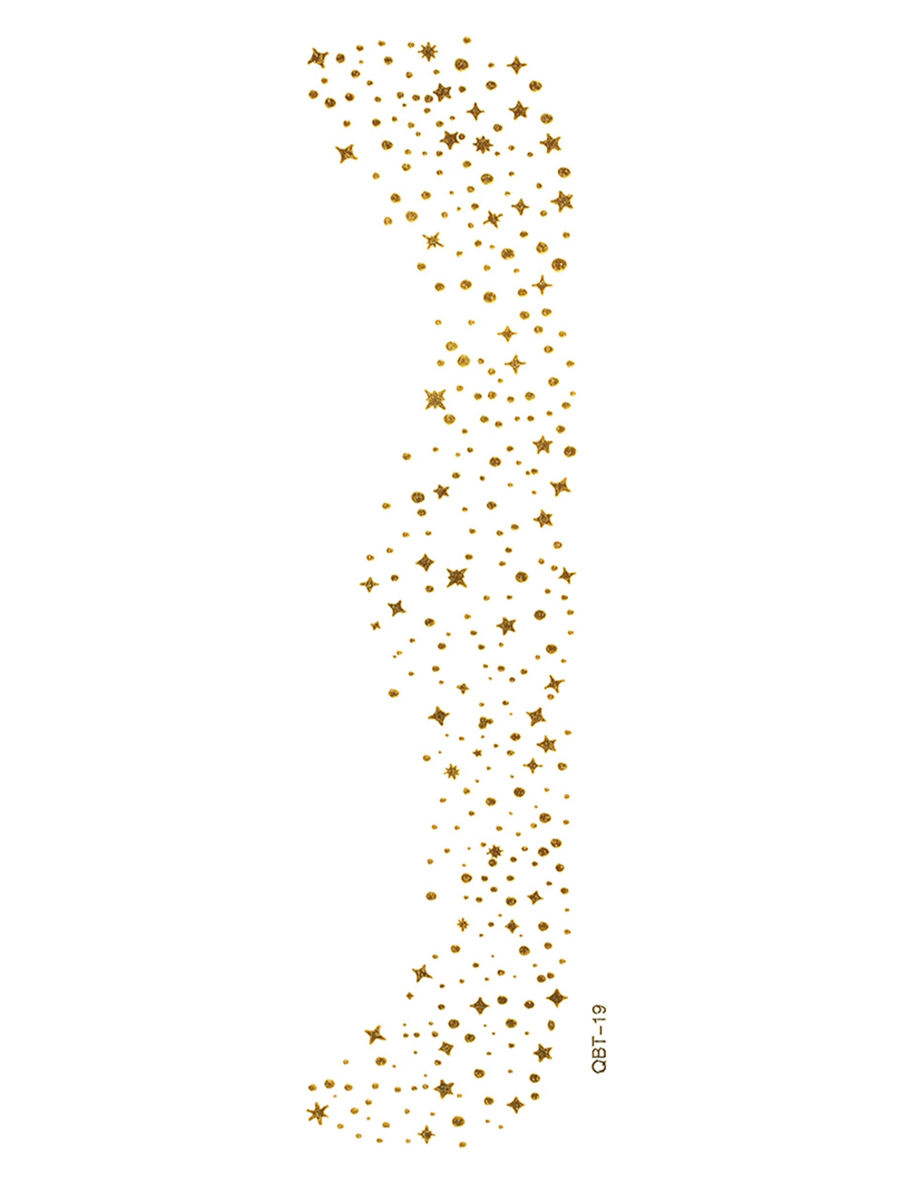 Dodajte pravljičen pridih svoji maski z zlatim lepilnim tatujem v videzu peg. Enostaven za namestitev in odstranitev, daje obrazu sijoč in izviren, glamurozen učinek. Idealen za festivale, karneval, kostumske zabave ali noč čarovnic, odlično dopolnjuje vaše pustne kostume ali umetniške oprave.