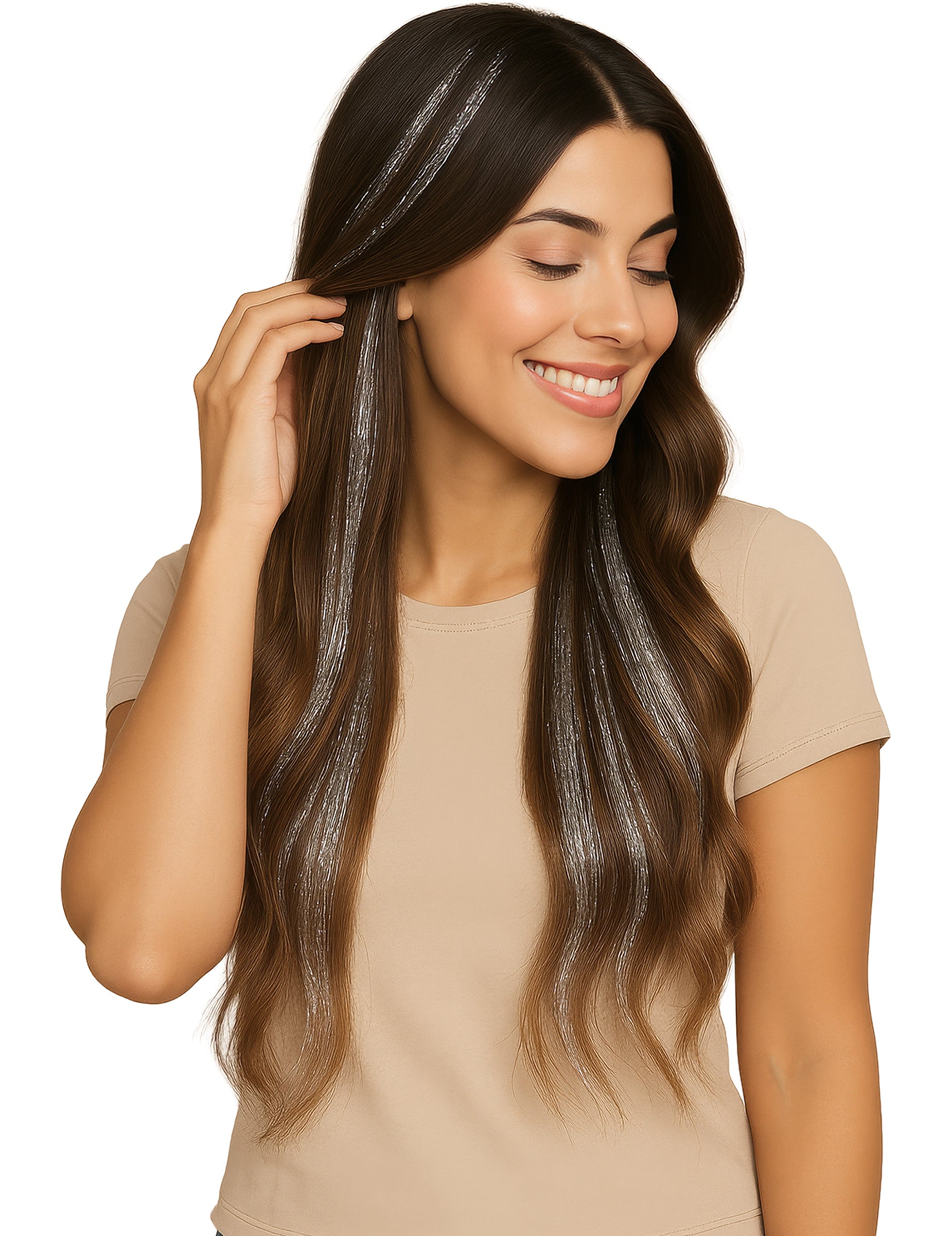 3 Mèches brillantes argentées 50 cm