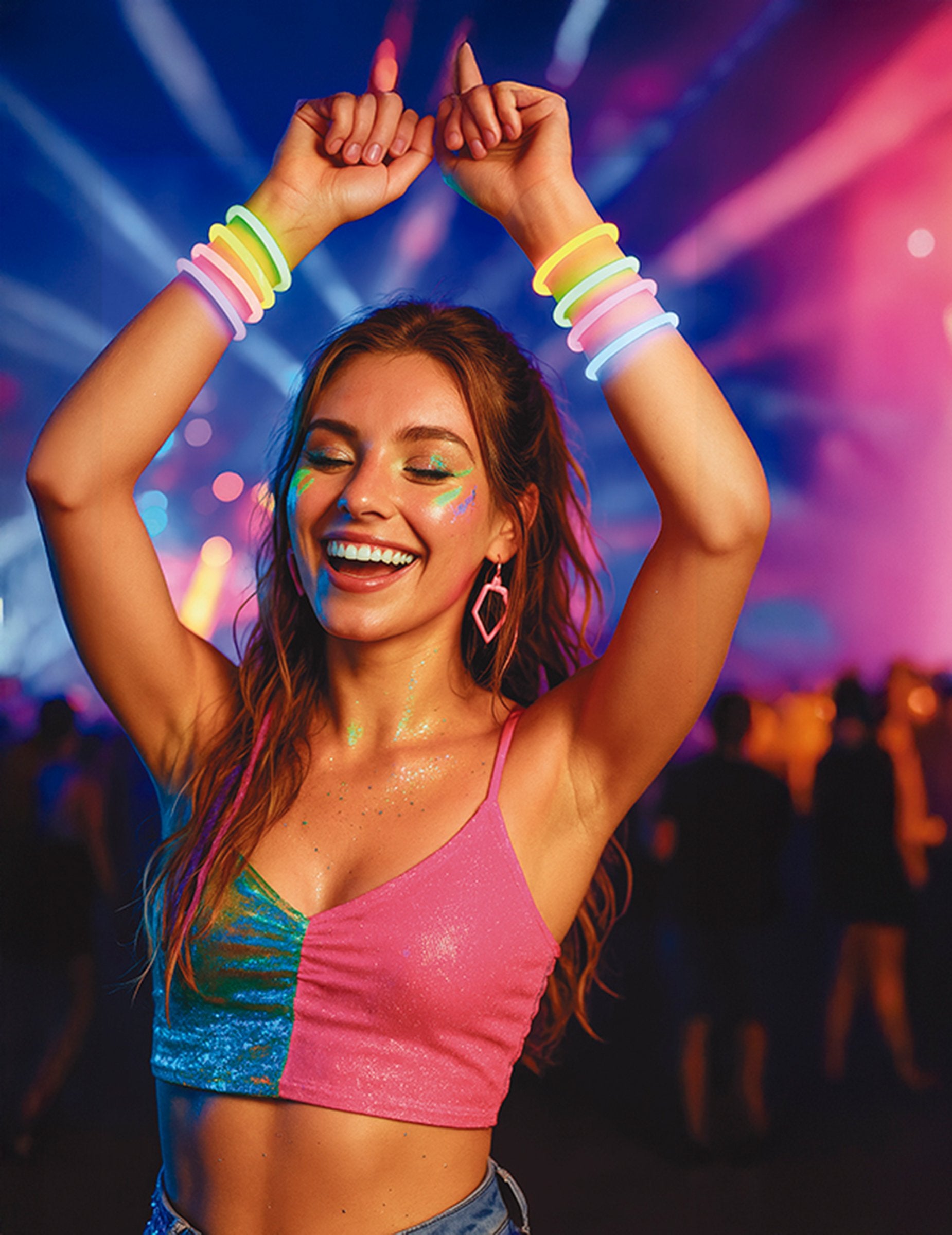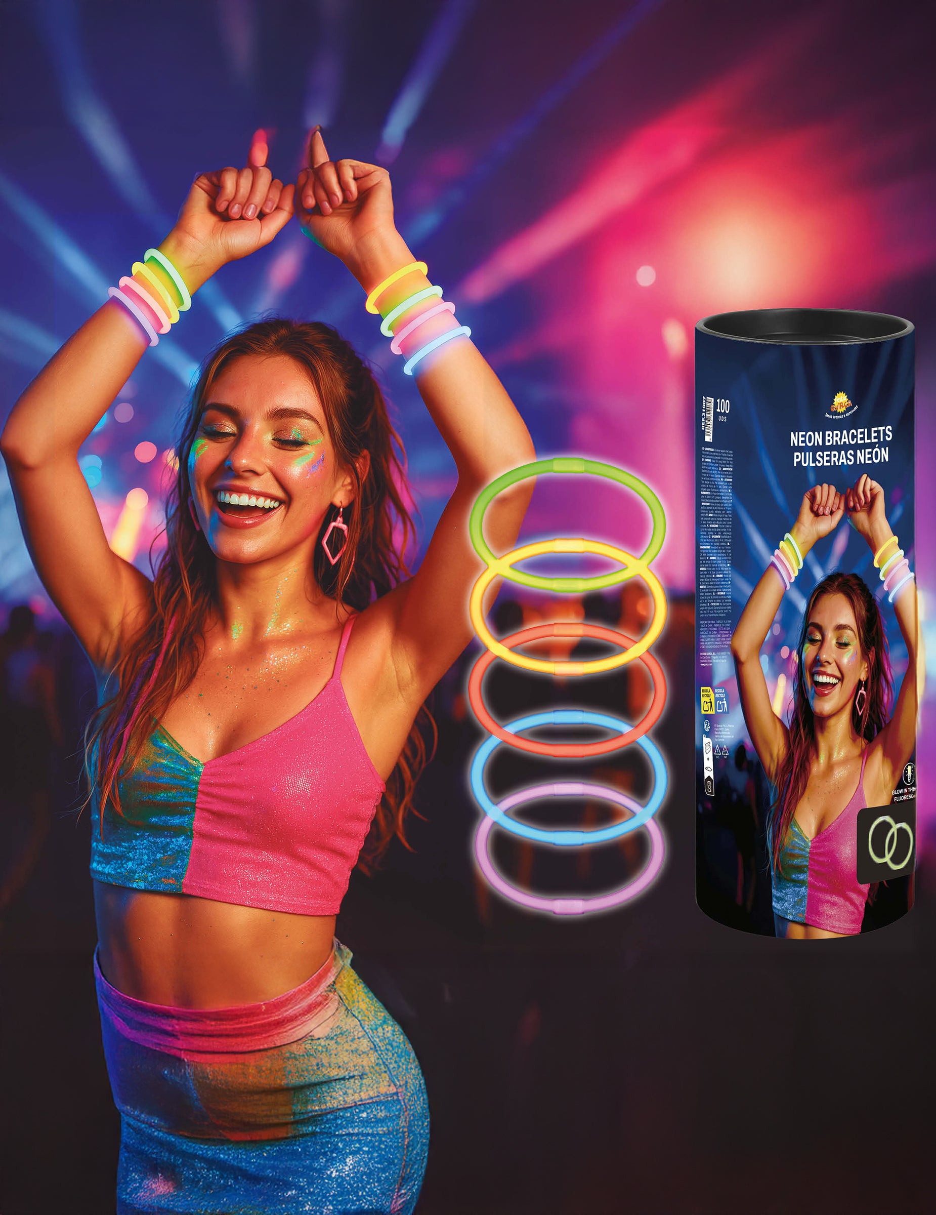 Teh 50 večbarvnih zapestnic, ki se svetijo v temi, je idealnih za osvetlitev vaših zabav, koncertov, festivalov ali druženj s prijatelji. Enostavno jih je aktivirati, le rahlo jih upognite, da sprostite njihov svetleč sijaj. Vsaka zapestnica se spremeni v bleščeč neonski dodatek, idealen za ustvarjanje zabavnega in barvitega vzdušja. Zaradi svoje prilagodljivosti so primerne tako za odrasle kot za otroke.