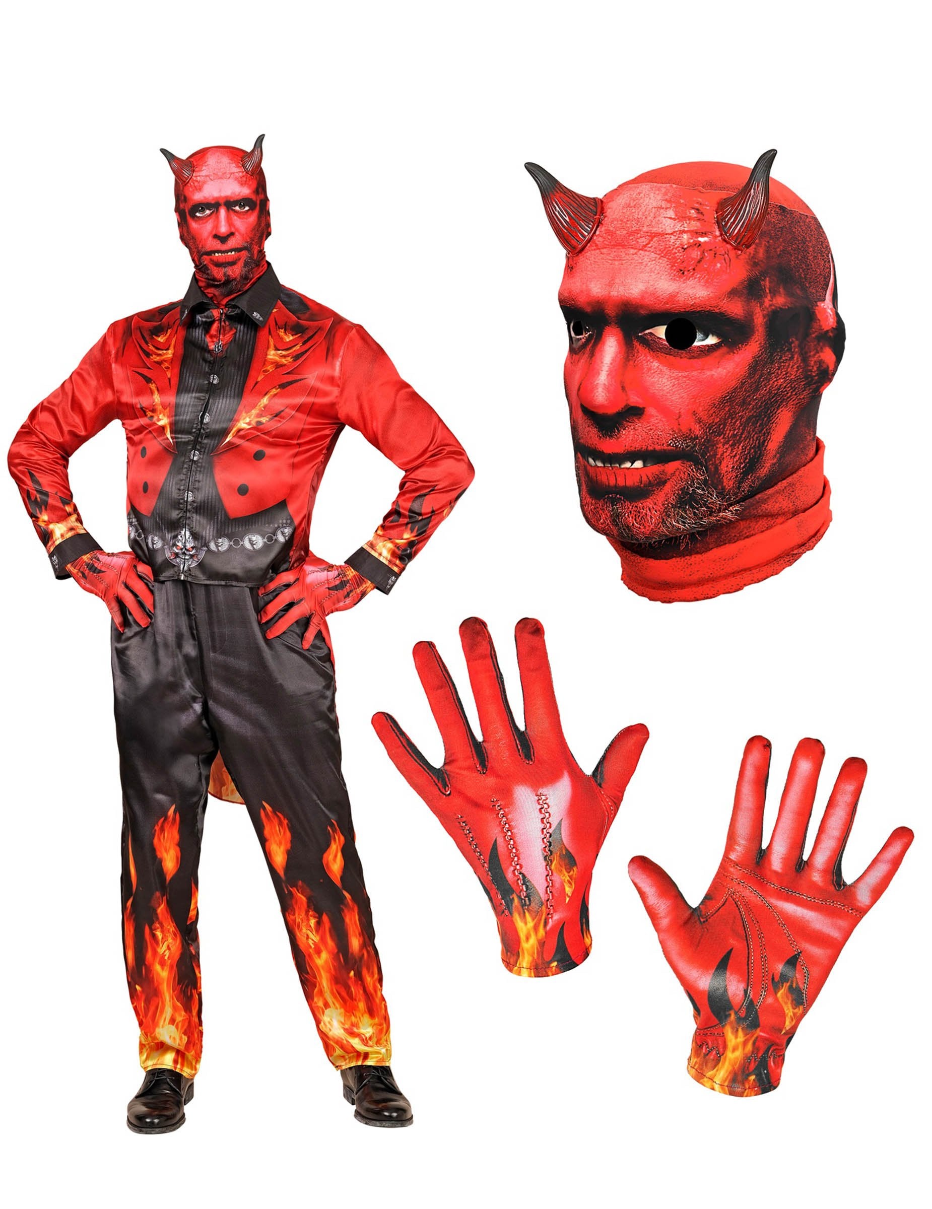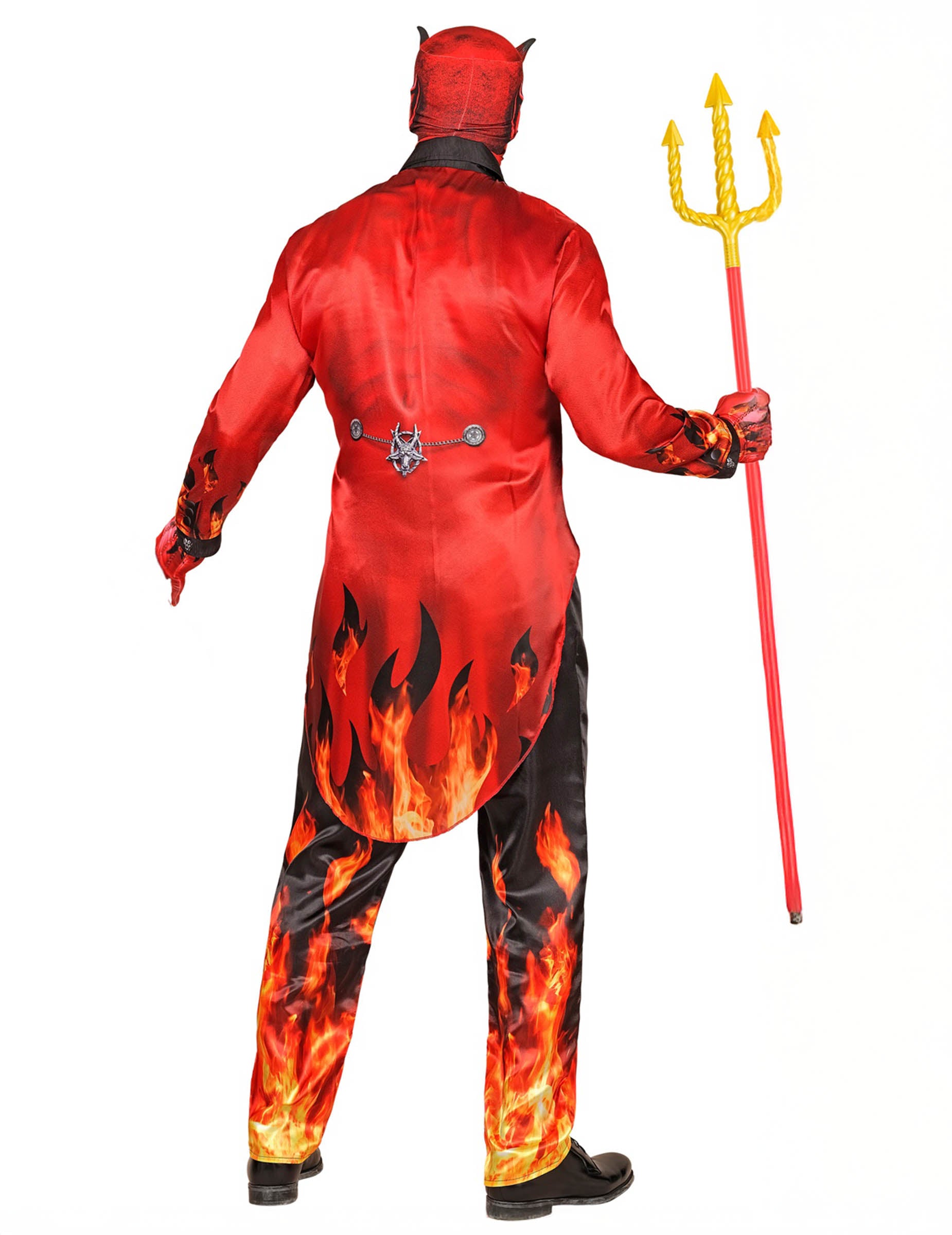 Potopite se v globine pekla s tem celovitim kostumom gorečega hudiča za odrasle. Sestavljen iz jakne, hlač, rokavic in maske, vse iz tiskanega blaga, ponuja spektakularen in ognjen videz. Njegovi motivi žarečih plamenov na spodnjem delu hlač in na rokavih dajejo vašemu videzu strašljivo in osupljivo dimenzijo.
