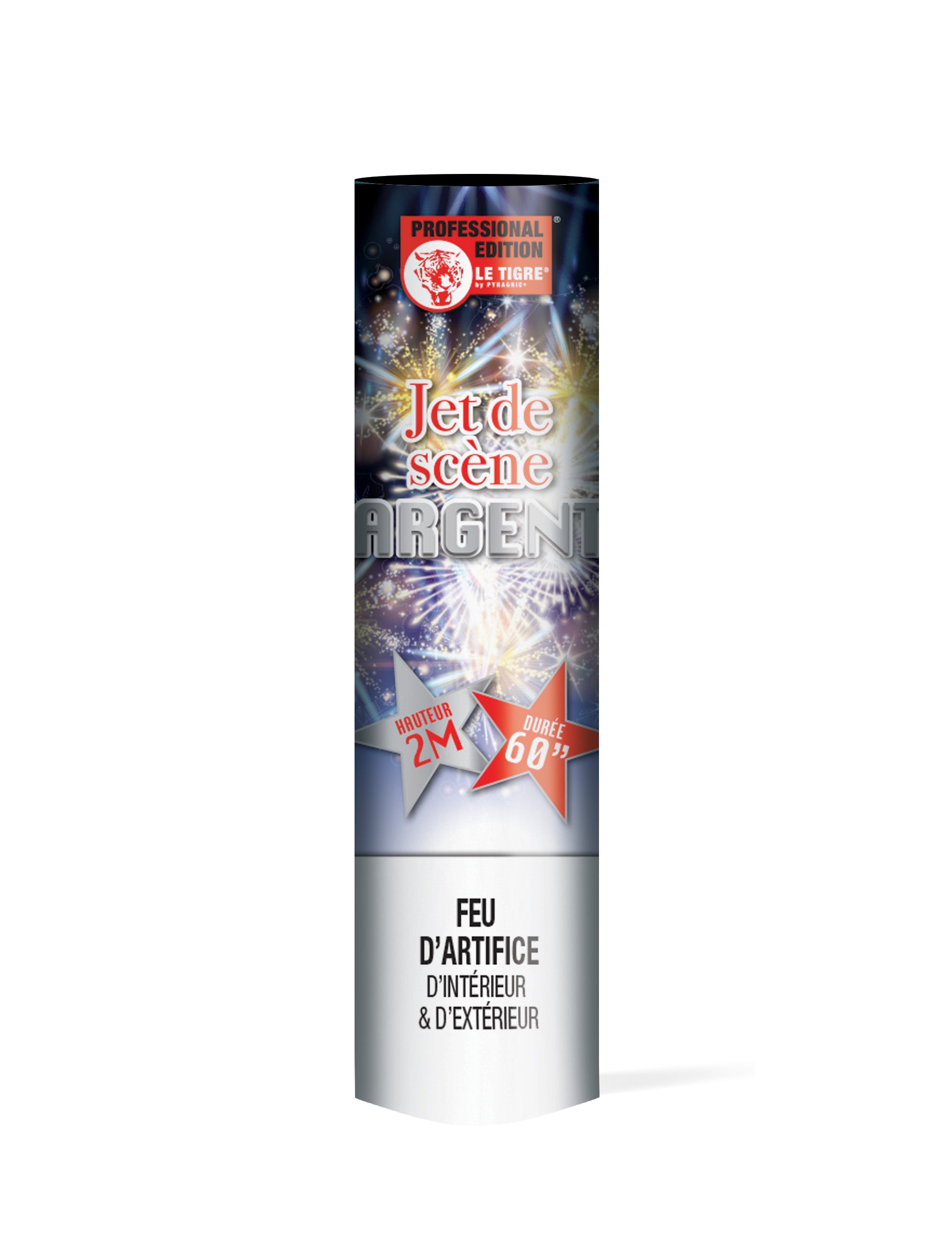 Ta srebrna scenska fontana 2 metra 1 minuta ponuja intenziven izbruh isker skozi celo minuto, z višino svetlobnega učinka do 2 metra.