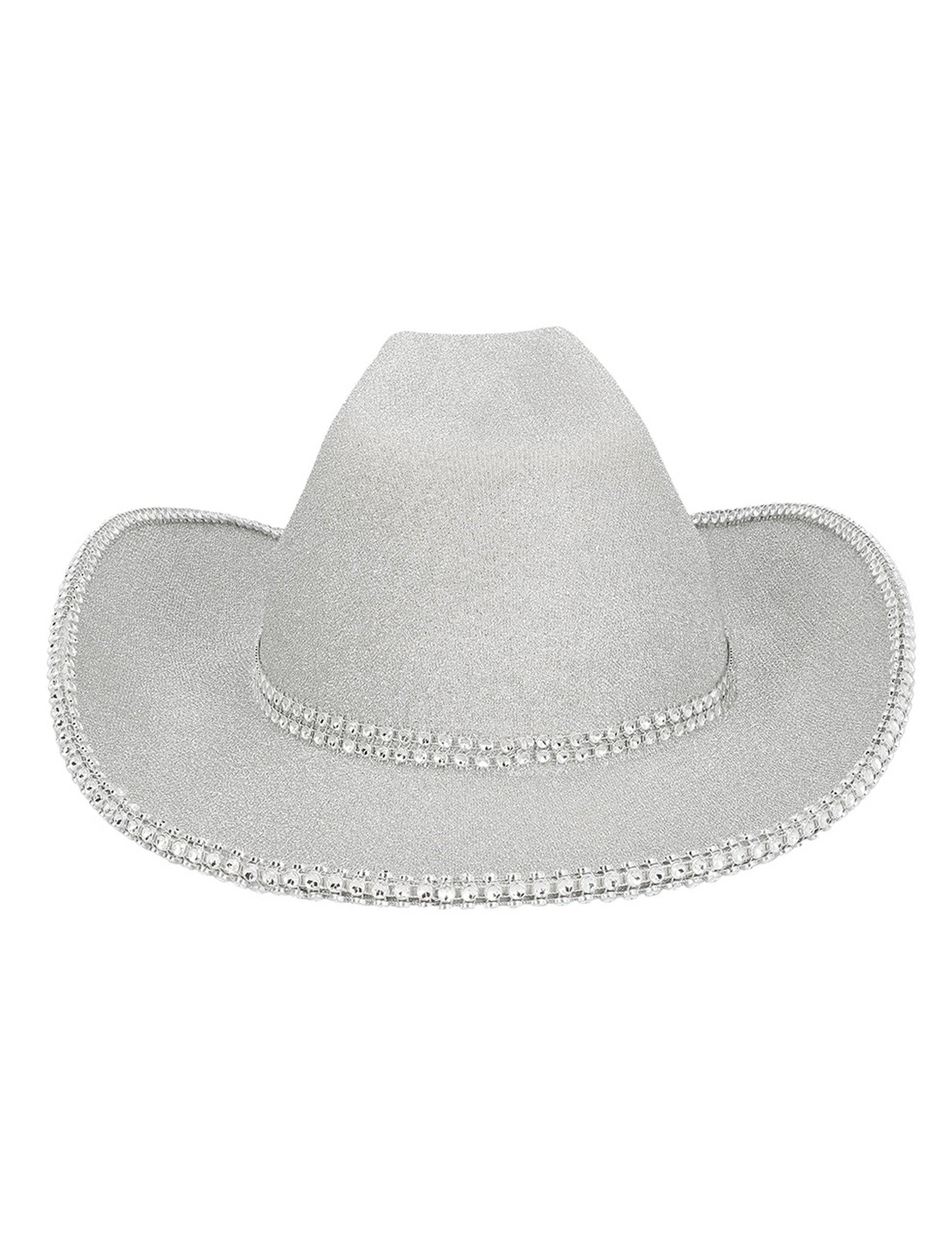Srebrn bleščeč kavbojski klobuk za odrasle