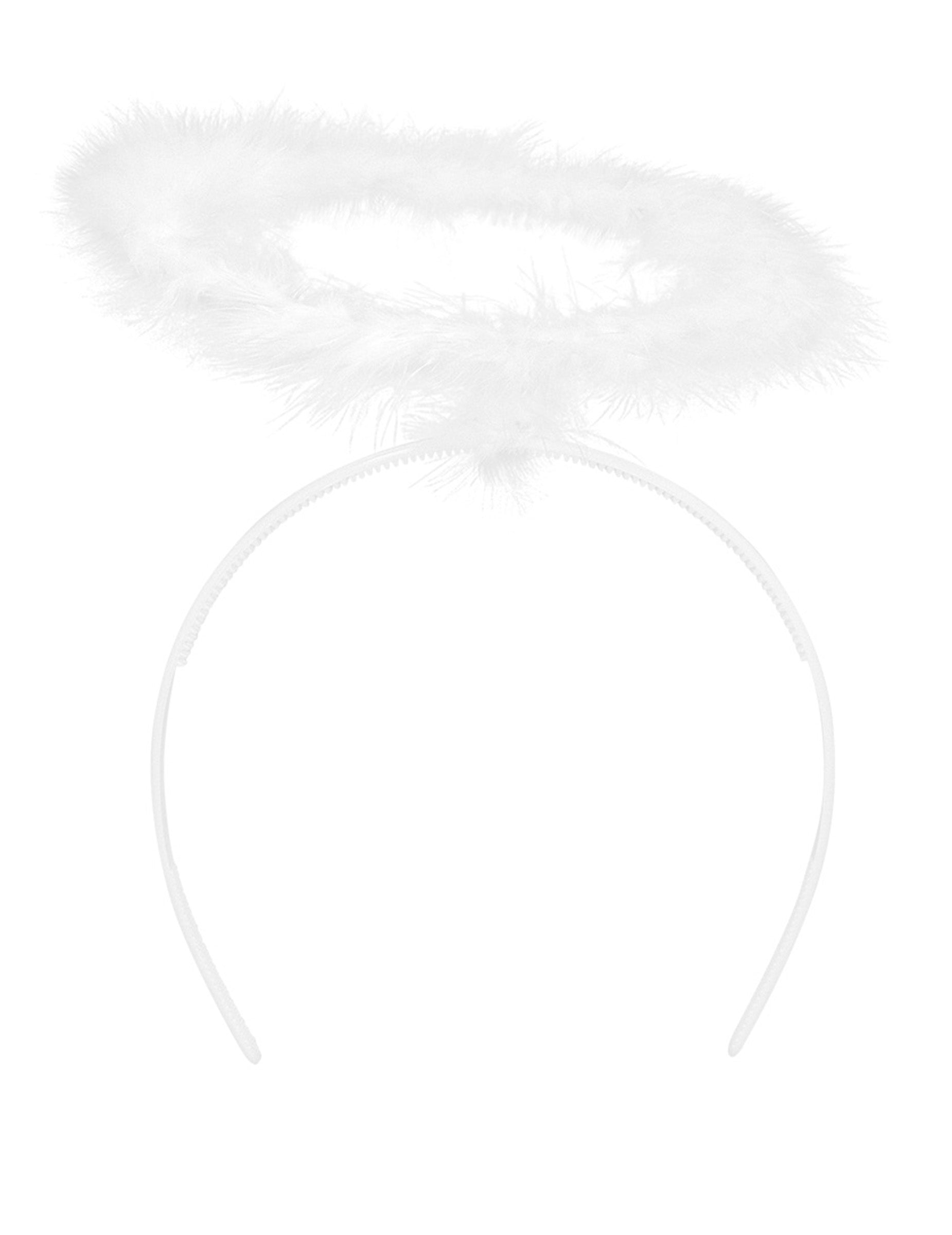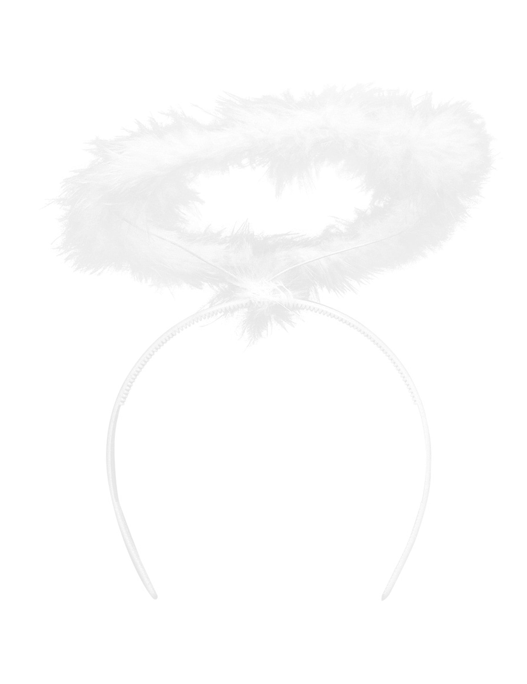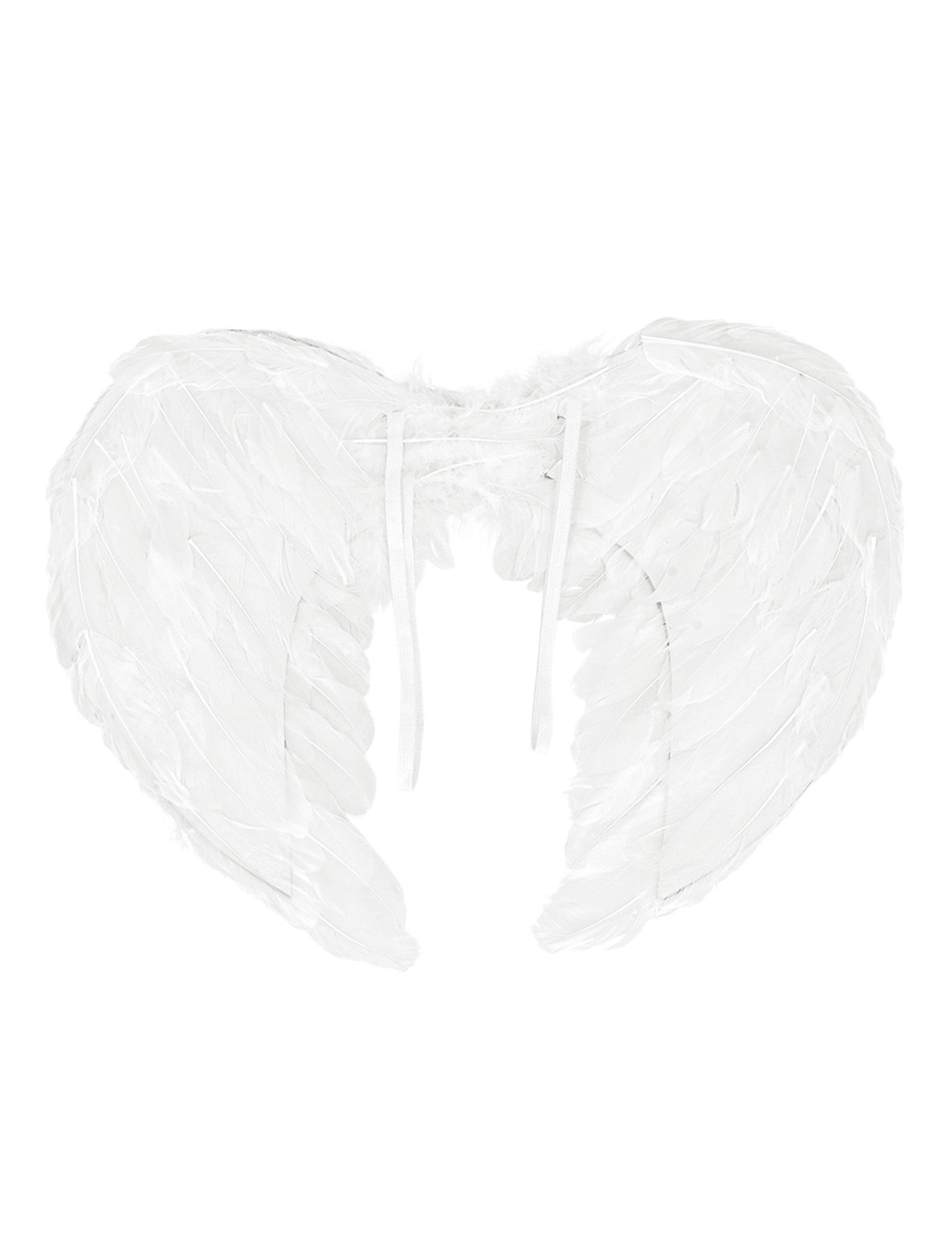 Ta komplet belega angela je popoln dodatek za poudarjanje vašega angelsko videza. Vsebuje par elegantnih kril (45 x 35 cm) in naglavni obroč z okrašeno avreolo iz rahlega materiala. Idealna izbira za izvirno in prefinjeno preobleko na karnevalu, predstavi ali tematski zabavi. Enostavno ga kombinirate z belo ali srebrno obleko za zagotovljen učinek.