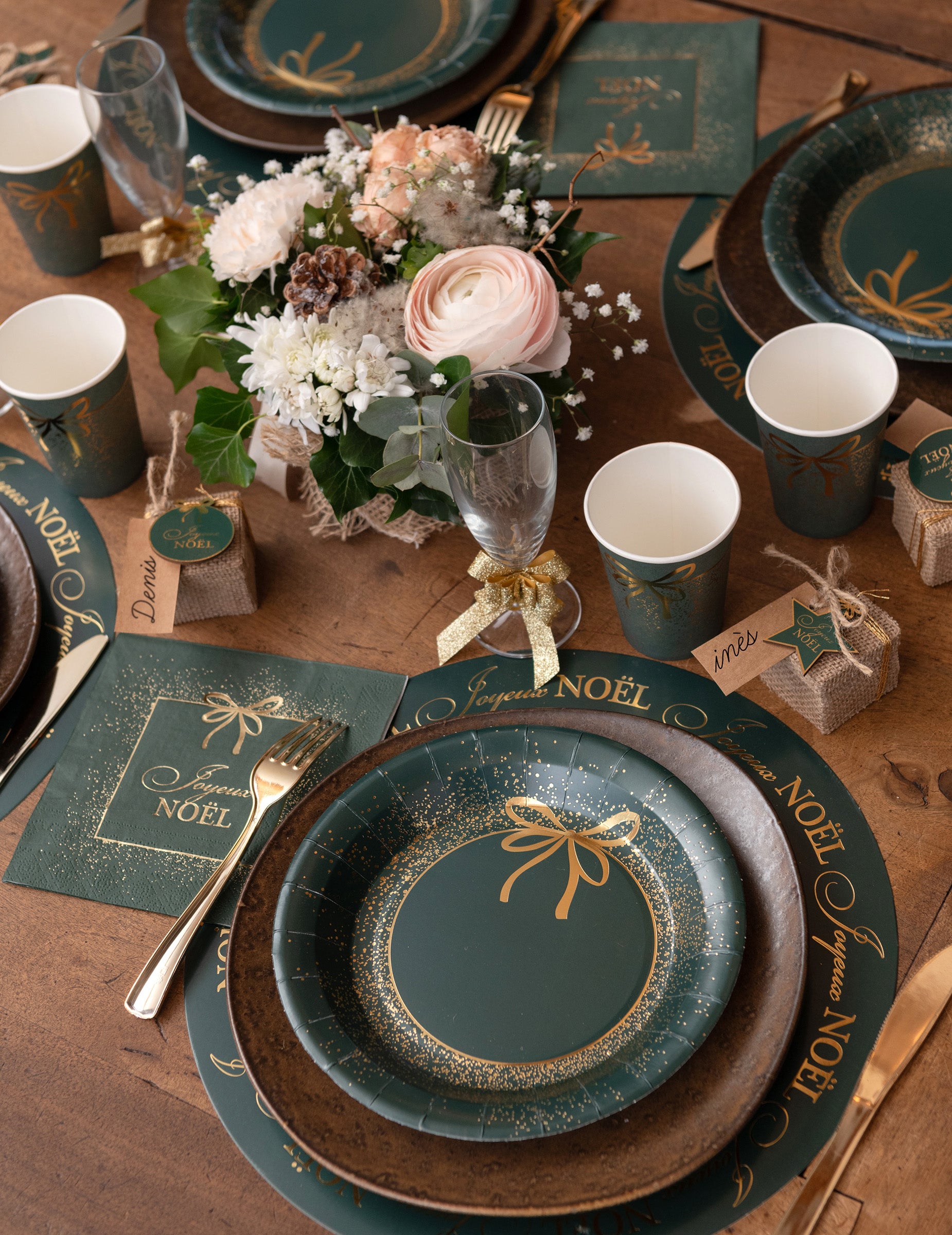 Dodajte svoji mizi pridih elegance s temi **10 zeleno-zlatimi božičnimi krožniki 23 cm** z minimalističnim slogom. Njihovo temno jelkovino zeleno barvo poudarja zlata ilustracija božične kroglice z bleščečimi detajli. Ti krožniki, izdelani iz trpežnega kartona, so popolni za vaša praznična srečanja. Ta klasična barvna kombinacija ponuja postavitev mize, ki je hkrati preprosta in razkošna. Idealni so za spremljavo vaših **božičnih** družinskih obrokov ali vaših končnih samopostrežnih bifejev s prijatelji.