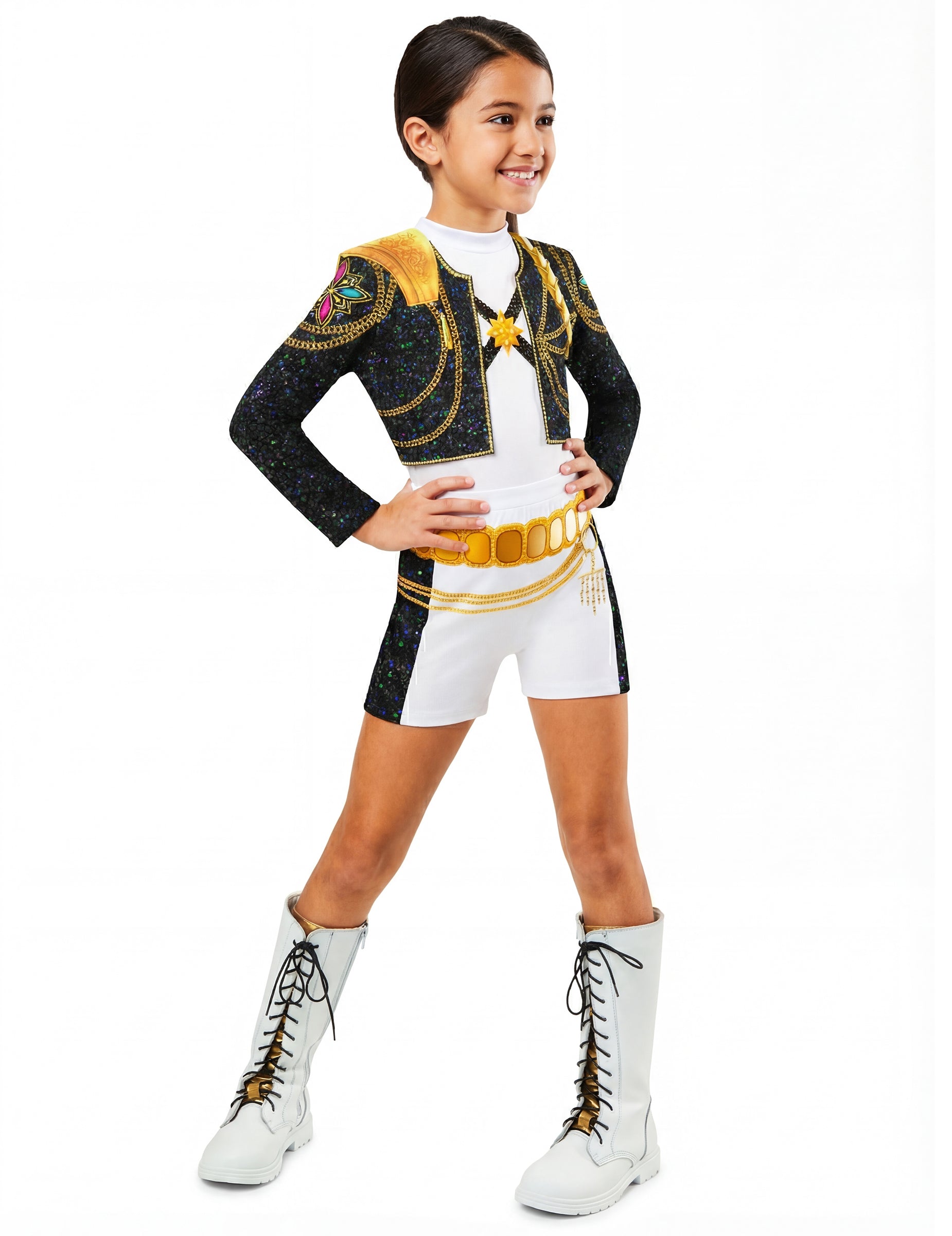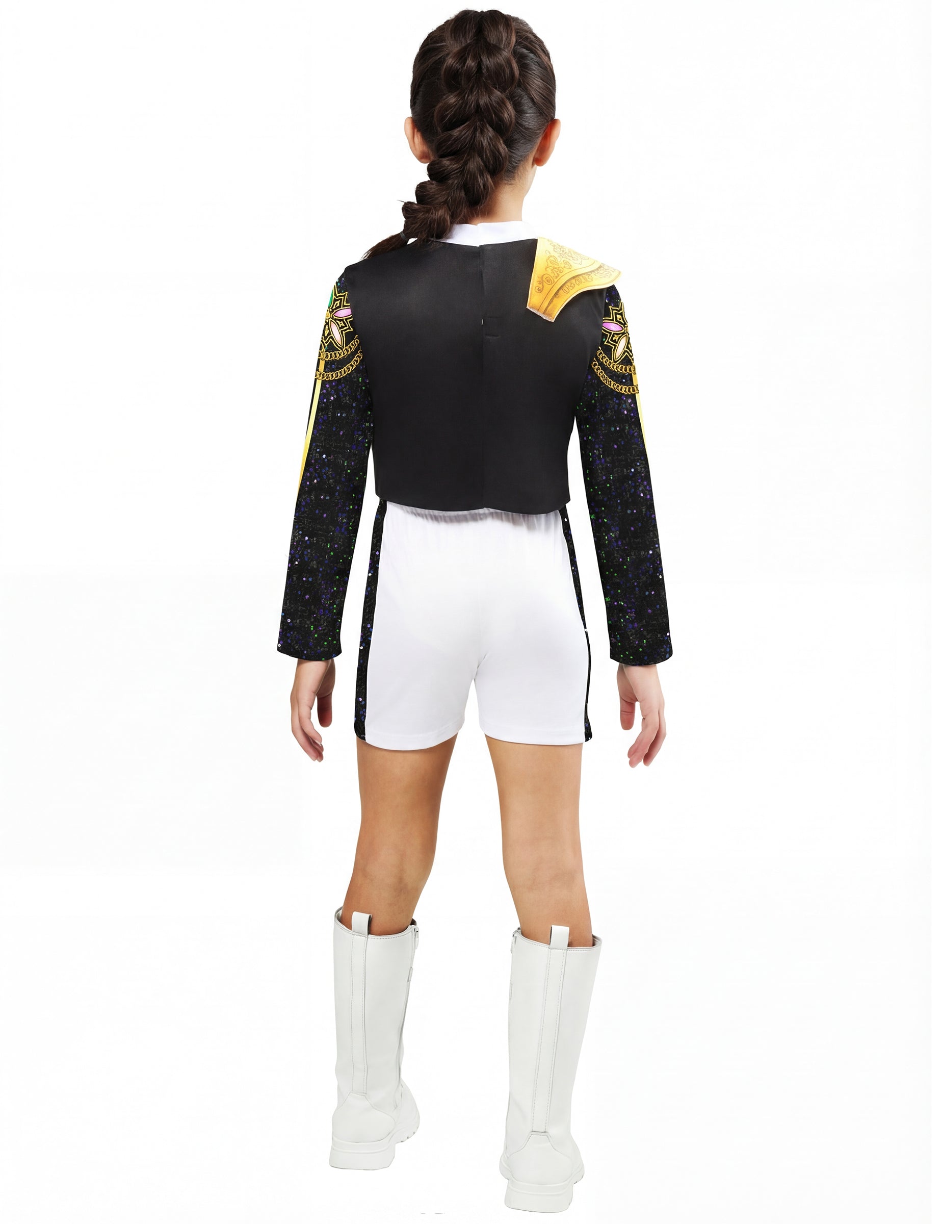 To Klasični kostum Rumi Golden K-pop Demon Hunter™ za dekle je pod Uradno licenciran Kpop Demon Hunter™ in vam omogoča, da poustvarite videz lika na dogodku v kostumih. Vključuje potiskan top in kratke hlače.