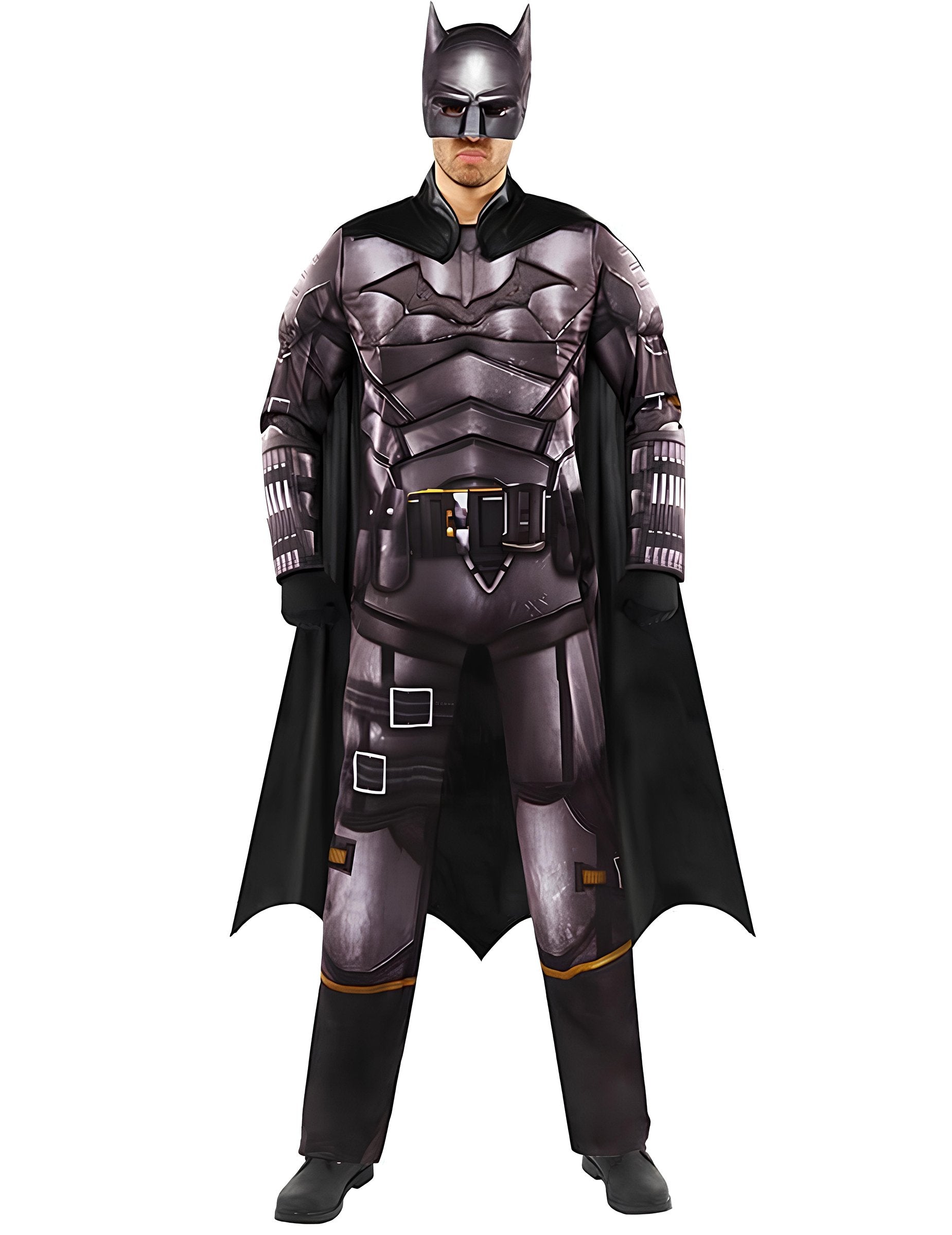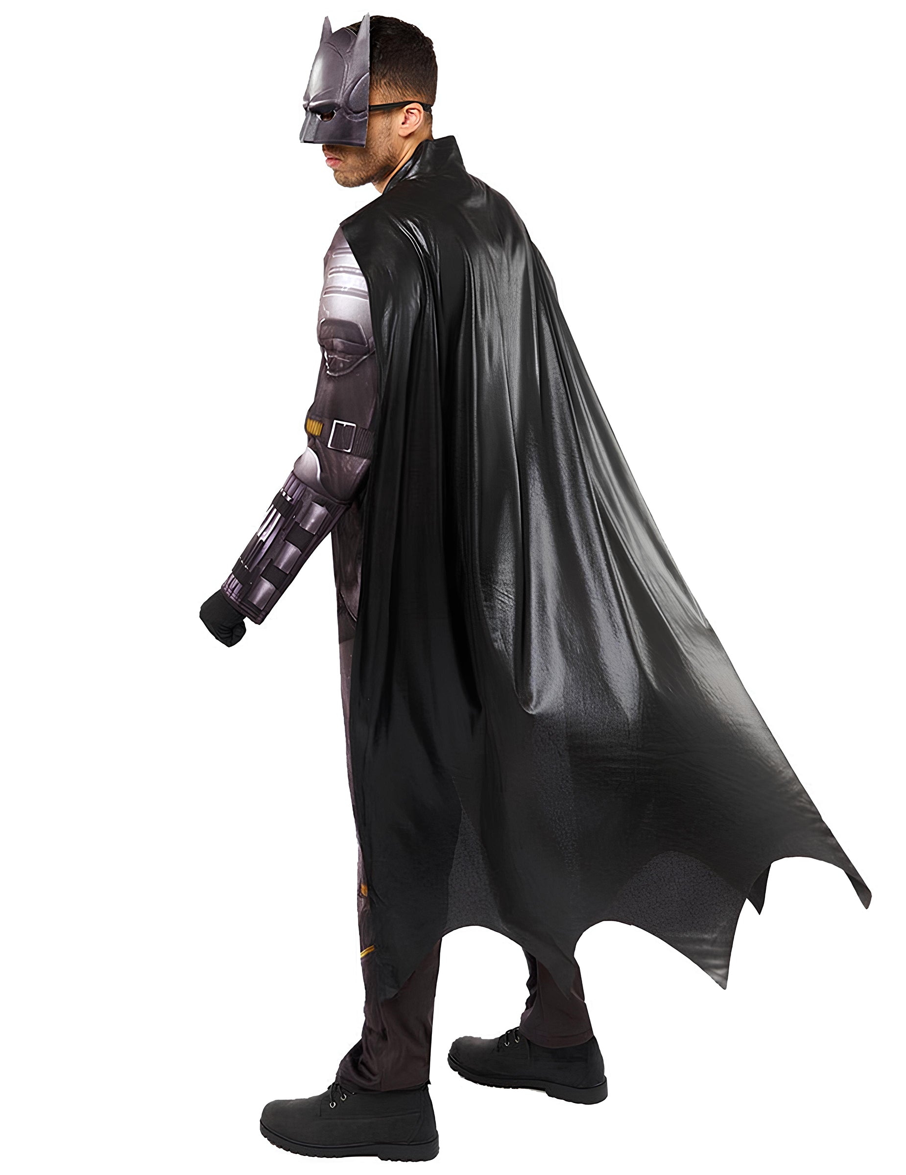 Široka pelerina doda gibanje celotnemu kostumu, ujemajoča se maska pa dopolni skrivnosten videz Temnega viteza.