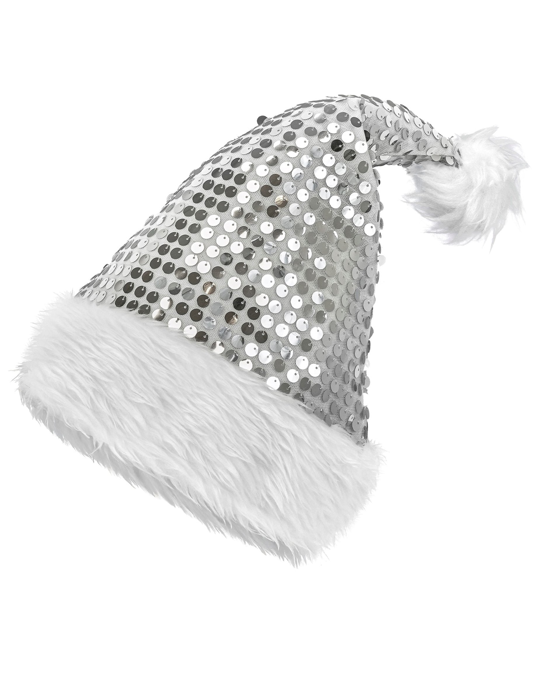 Ta srebrna božična kapa z bleščicami za odrasle združuje eleganco in bleščice ter popestri vaše praznične čase. Popolnoma okrašena z bleščečimi srebrnimi bleščicami odbija svetlobo za neustavljivo sijajen učinek. Njena bela obroba iz umetnega krzna in puhast cof dodajata mehak, zimski pridih. Udobna in glamurozna, odlično dopolnjuje praznično obleko ali nenavaden videz za božično zabavo. Popoln dodatek, s katerim boste zasijali na prazničnem obroku, poslovnem dogodku ali silvestrovem druženju s prijatelji.
