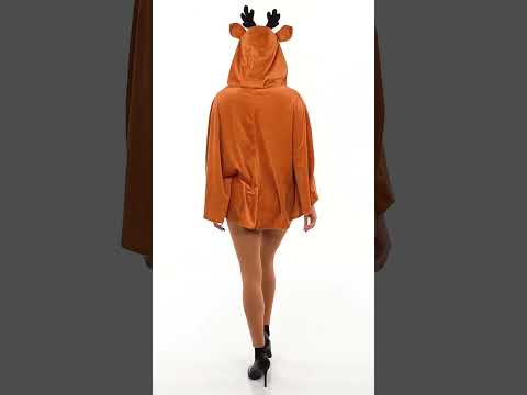Ta jelenov pončo za odrasle je popolna izbira, če se želiš na izviren način vživeti v božični duh. Iz mehkega in toplega materiala je sestavljen iz rjavega ogrinjala s kapuco, okrašeno z majhnimi rogi in ušesi, ki prikupno prikliče na misel slavnega spremljevalca Božička. Lepi beli vzorci ob straneh spominjajo na pegasto dlako pravega jelena.