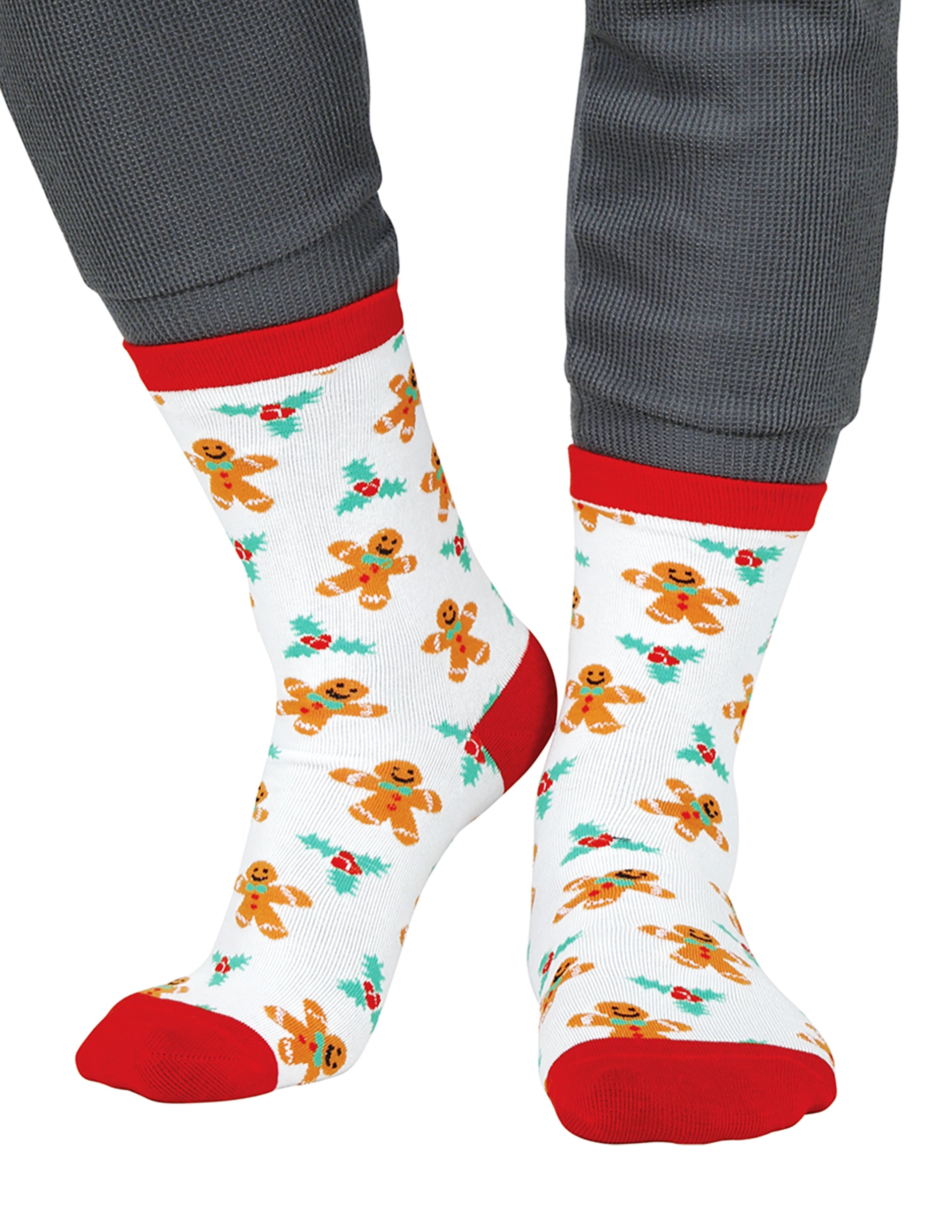 Te bele božične nogavice za odrasle z vzorcem medenjakov bodo vaši obleki dodale topel in sladek pridih. Prikupni mali medenjaki, obdani z listi bodike, se ponavljajo na svetlem ozadju in vzbujajo vesel in tolažilen duh praznikov. Njihovi rdeči robovi, pete in prsti zagotavljajo živahen in prazničen pridih, ki je kot nalašč za dopolnitev veselega sezonskega videza.