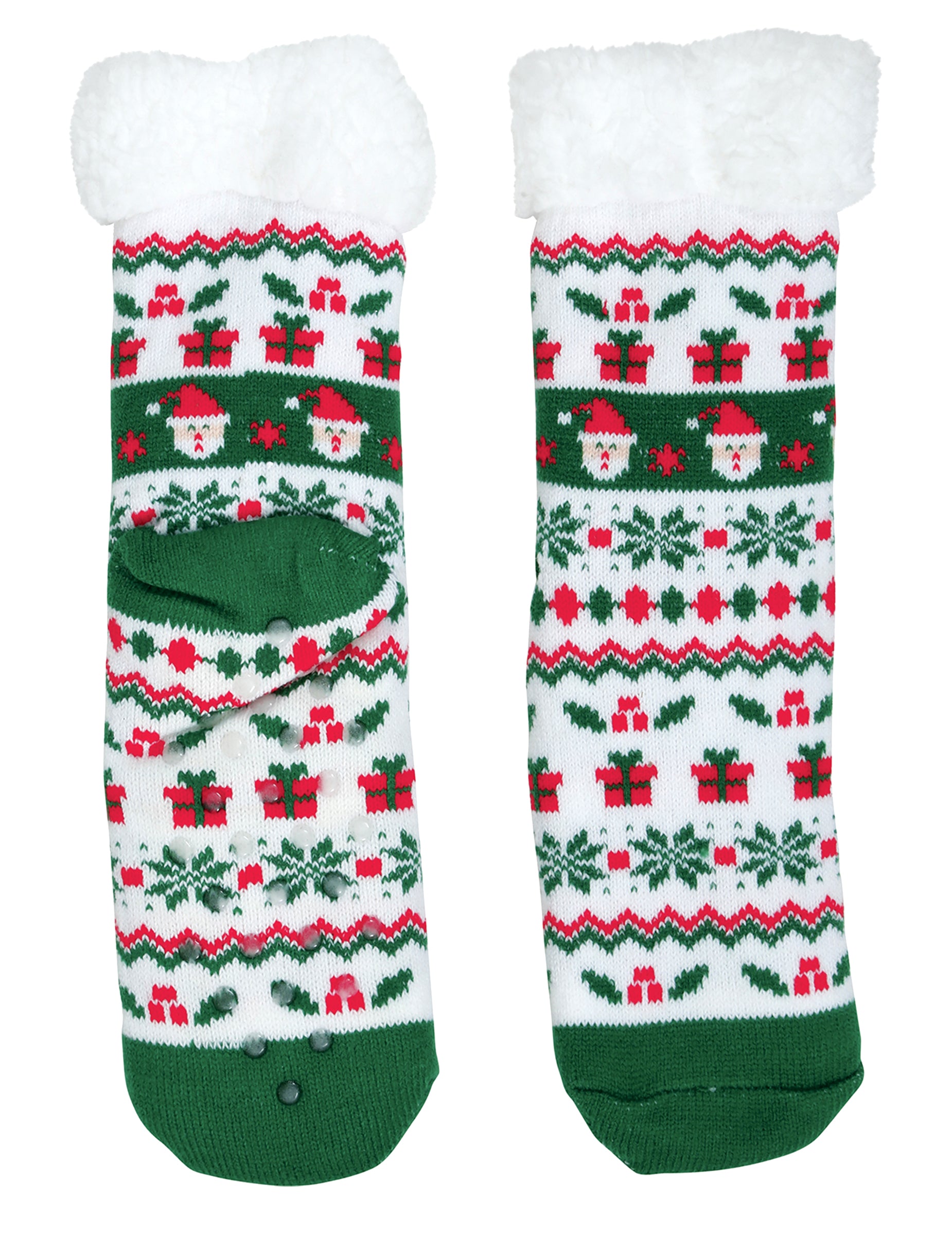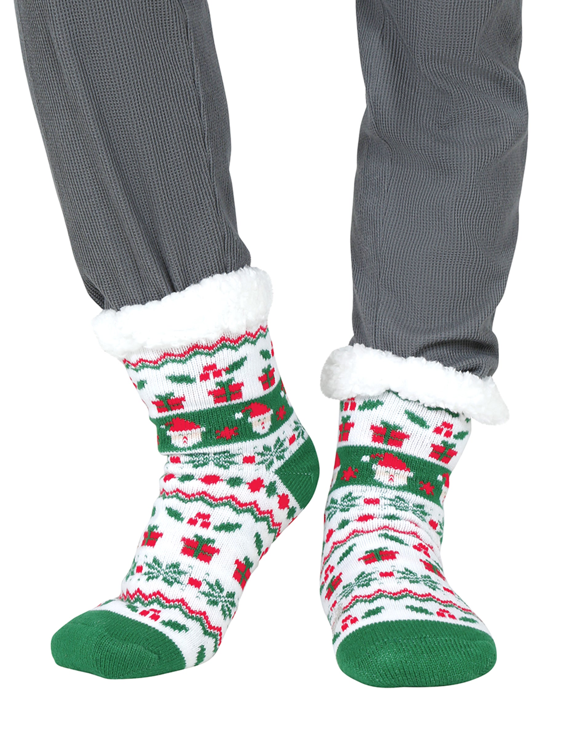 Te bele in zelene božične termo nogavice za odrasle so popolne za spopadanje z mrazom v stilu. Njihovi pisani motivi smrečic, snežink in daril pričarajo vso čarobnost praznikov, medtem ko beli umetni krzneni robovi nudijo občutek udobja in topline. Mehke, puhasto prijetne in praznične bodo popestrile vaše trenutke sprostitve ter dodale veselo noto vašim zimskim opravami.