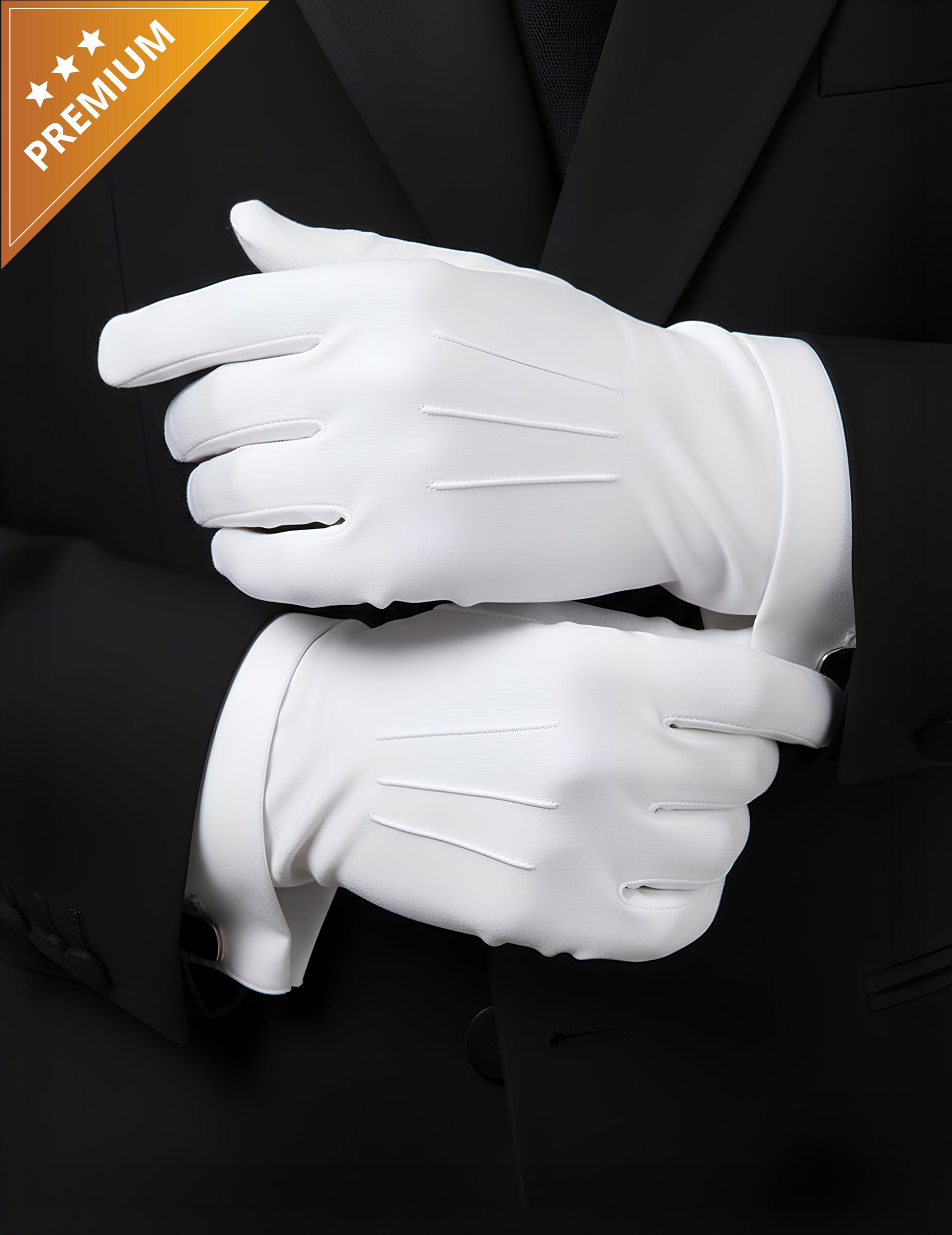 Te razkošne bele Božičkove rokavice se odlično dopolnjujejo s tradicionalno nošo slavnega lika. Njihov mehak in prožen material ponuja optimalno udobje, hkrati pa zagotavlja eleganten videz. Njihova brezhibna barva simbolizira čistost in radodarnost božičnega duha. Nepogrešljiv dodatek, ki dopolni vašo obleko za razdeljevanje daril in zimske praznike.