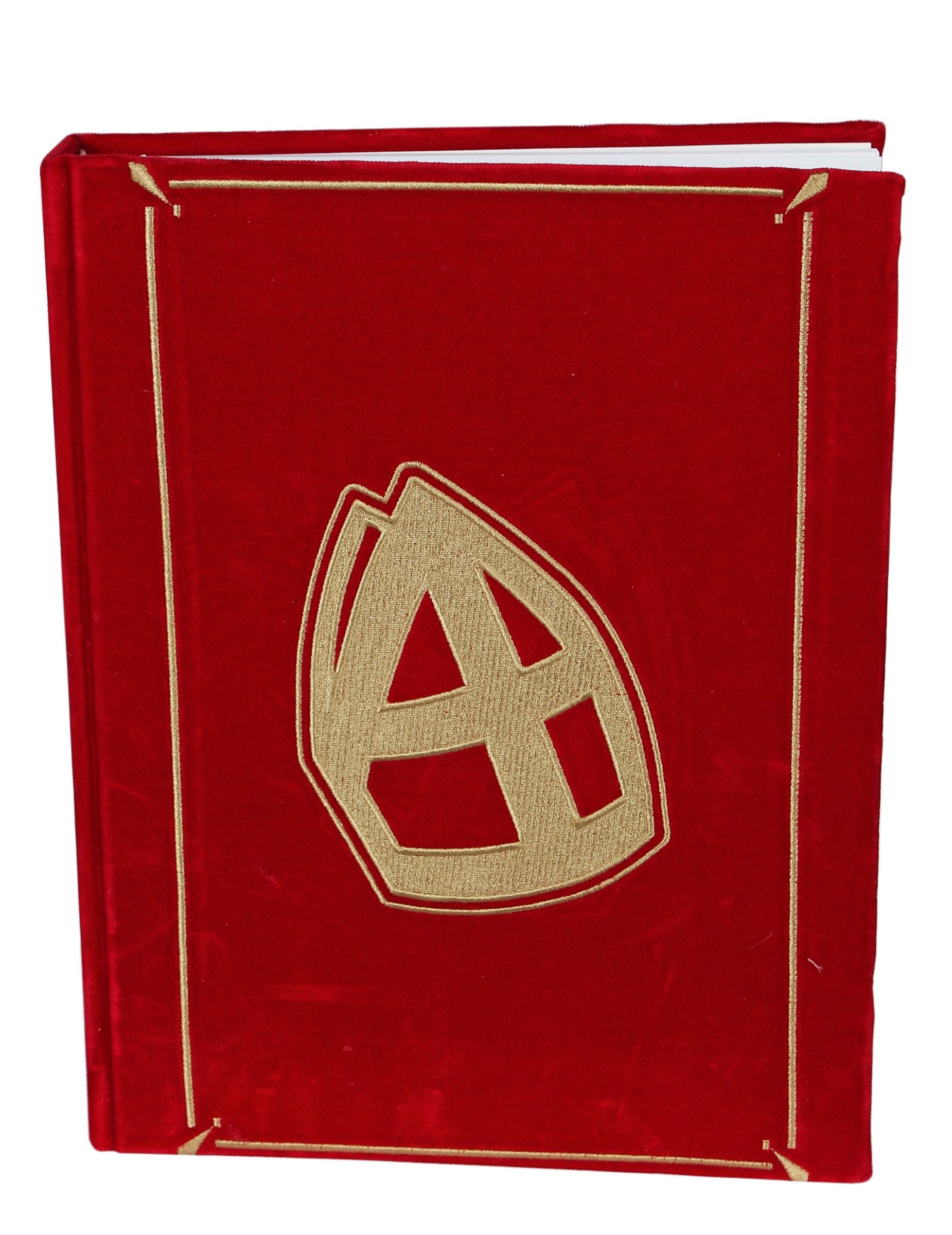 Ce livre de Saint-Nicolas de luxe se distingue par sa couverture en velours rouge profond, sublimée d’un motif doré de mitre brodé avec soin. Son aspect noble et raffiné en fait un accessoire incontournable pour compléter le costume du célèbre saint. Idéal pour noter les noms des enfants sages et faire vivre la magie de la légende. Un élément essentiel pour donner encore plus d’authenticité à vos célébrations de la Saint-Nicolas.