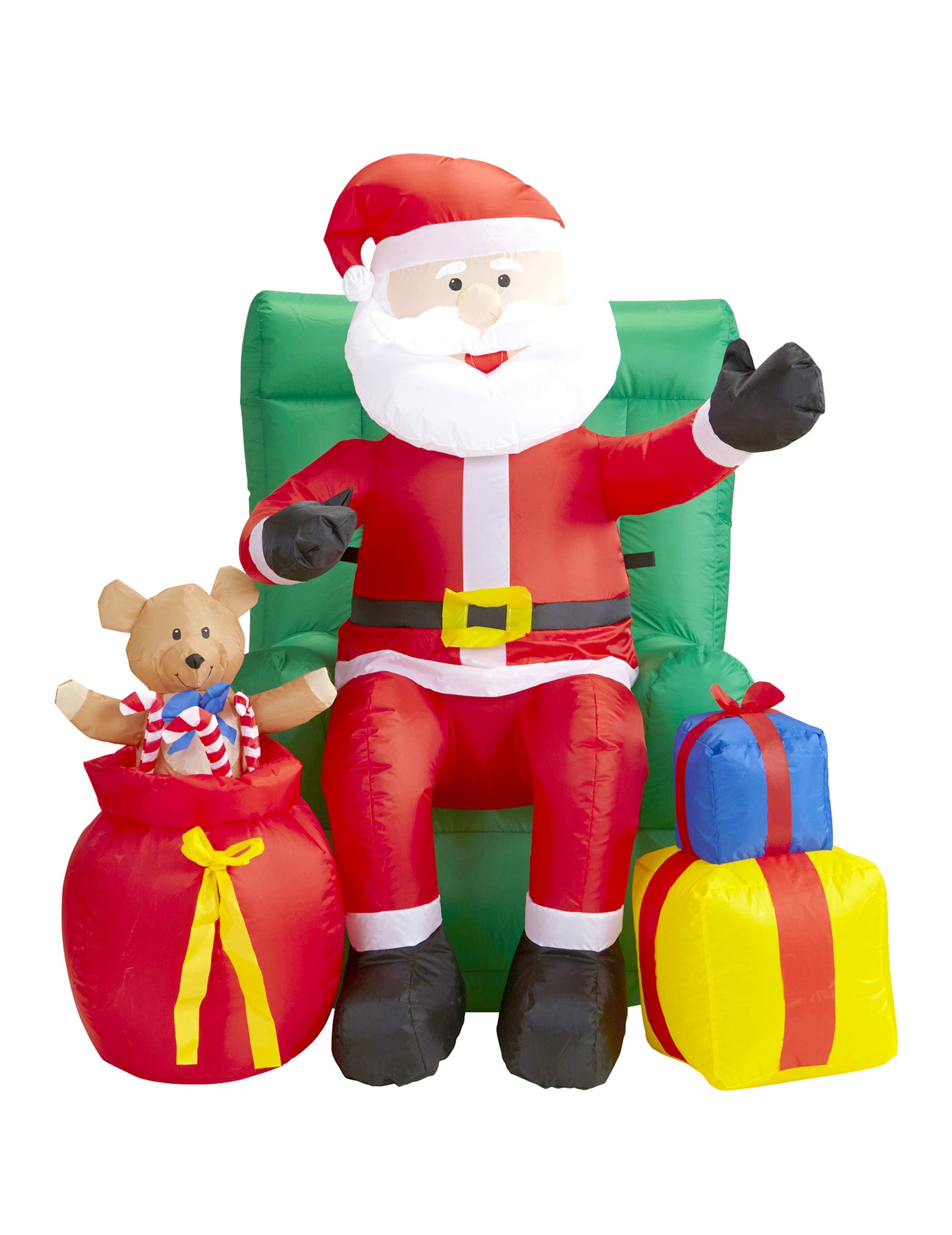 Napihljiva animirana dekoracija Božiček, ki sedi z darili 122 cm