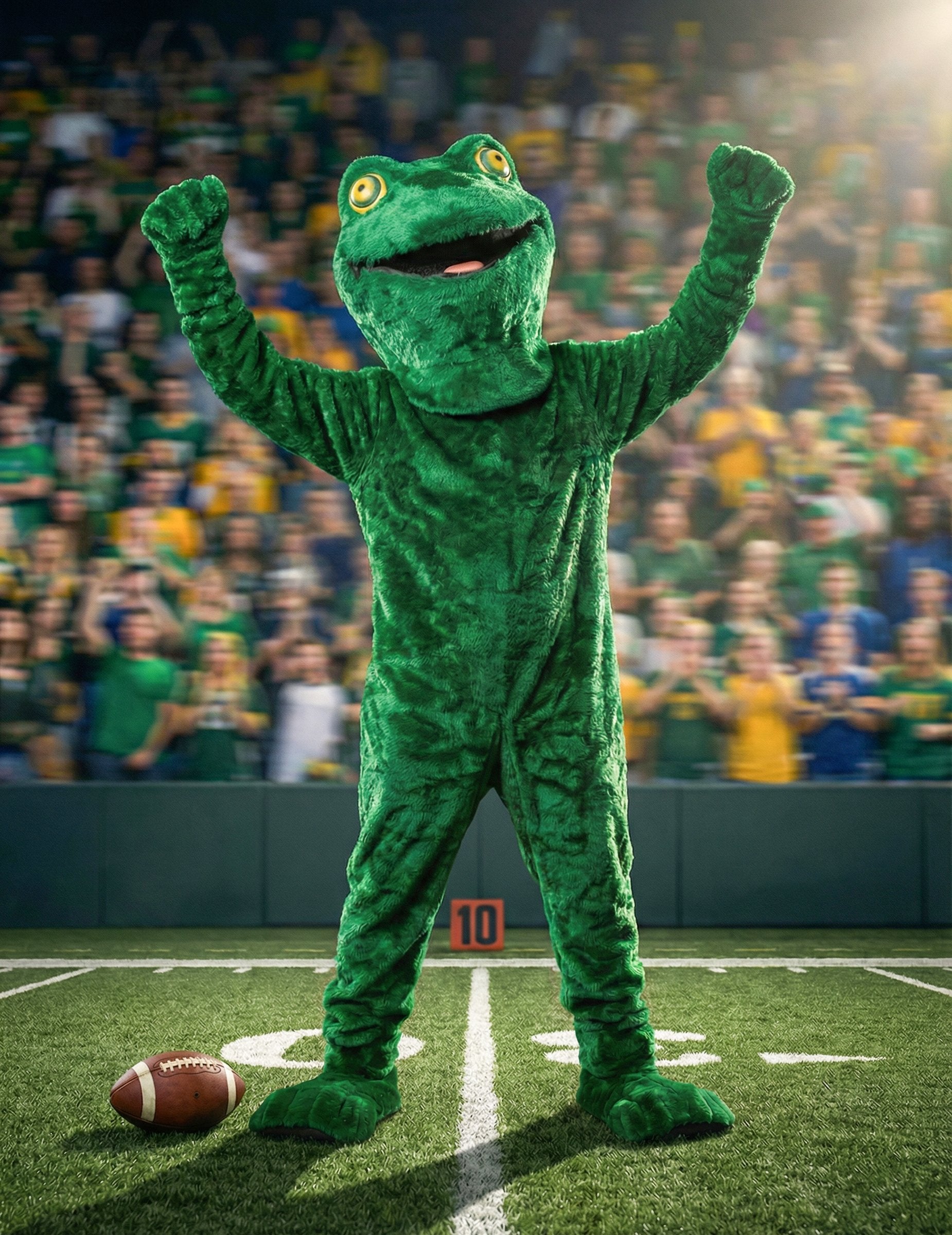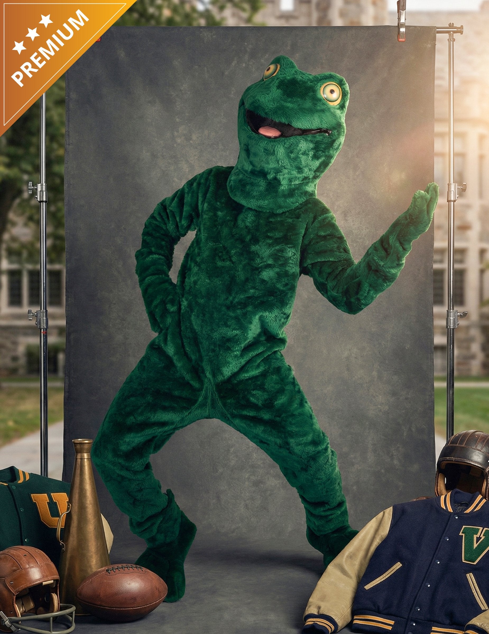 Ta maskota za odrasle, žabo, vključuje mehak kombinezon, veliko žabjo masko, rokavice in prevleke za čevlje za popoln videz. Zelen kombinezon pokriva celotno telo in zagotavlja enoten videz. Maska prikazuje veliko žabjo glavo z okroglimi očmi in širokim nasmehom. Rokavice tvorijo sprednje noge, prevleke za čevlje pa kostum segajo do tal. Popolna maskota za zabavo občinstva na karnevalih, rojstnodnevnih zabavah ali prazničnih dogodkih.