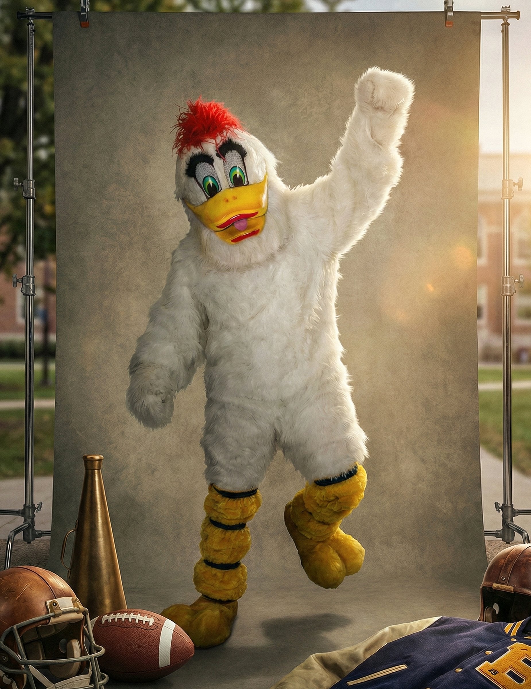 Ta vrhunski kostum maskote bele race za odrasle ponuja popolno in elegantno obleko za ustvarjanje živahnega vzdušja na karnevalu ali rojstnodnevni zabavi. Komplet vključuje kombinezon, par rokavic, masko in par prevlek za čevlje, kar vam omogoča, da ustvarite popolnoma enoten lik od glave do pet. Kombinezon, prekrit z belim umetnim krznom, ima mehak in brezšiven videz. Njegov ohlapen kroj omogoča enostavno gibanje med hojo, pozdravljanjem ali zabavanjem gostov. Rokavice, ki se ujemajo s kombinezonom, naravno podaljšajo učinek kril za celovito silhueto. Maska zagotavlja poln izraz kostuma: velike, pisane oči, izstopajoč kljun in rdeči čopi na vrhu, ki ji dajejo energičen obraz. Podrobnosti obraza ponujajo živahen in takoj prepoznaven videz, idealen za pritegnitev pozornosti in ustvarjanje veselega vzdušja. Prevleke za čevlje dopolnjujejo obleko z obliko, ki spominja na račje noge, kar zagotavlja vizualno kontinuiteto od glave do pet. Ta vrhunski kostum vam omogoča, da poosebljate zabaven in ljubki lik, ki je popoln za nasmejanje ljudi, zabavo množice ali sodelovanje pri fotografiranju med zabavo.