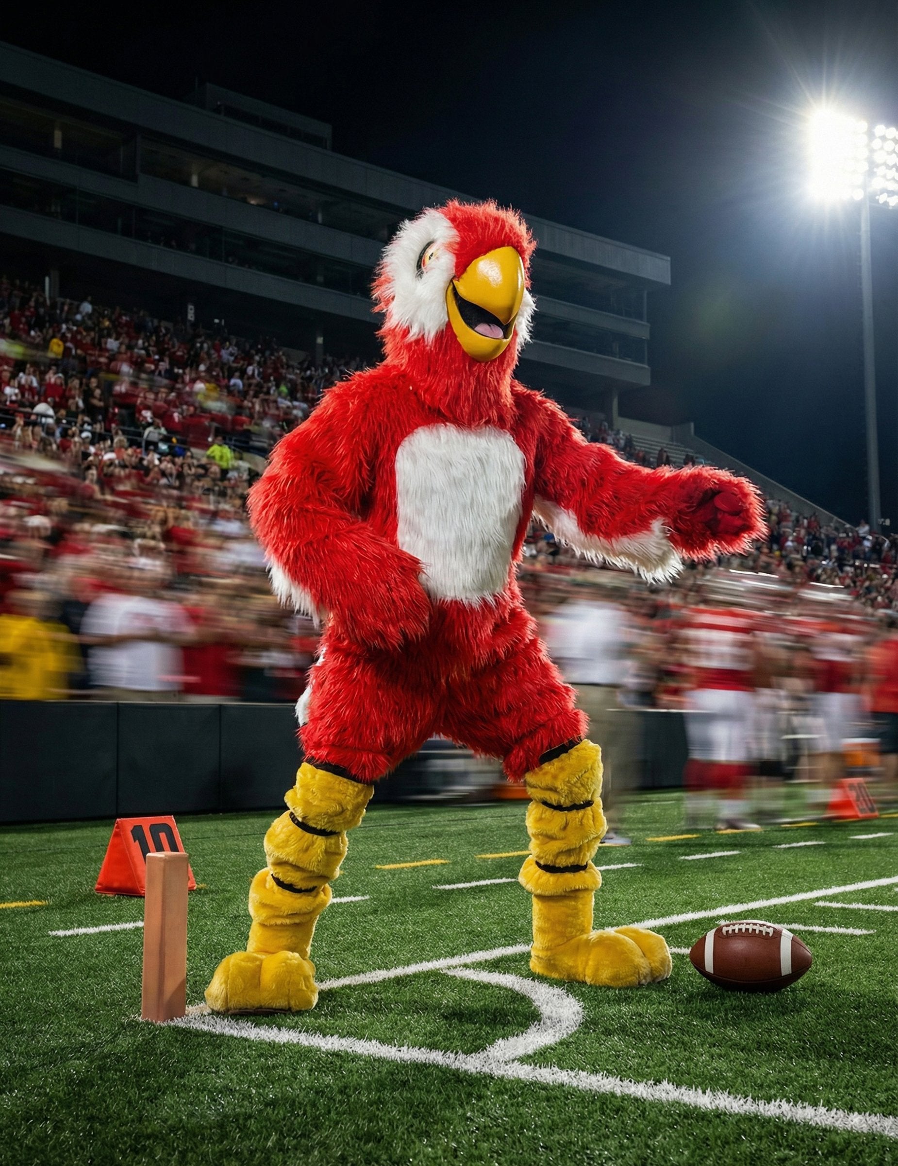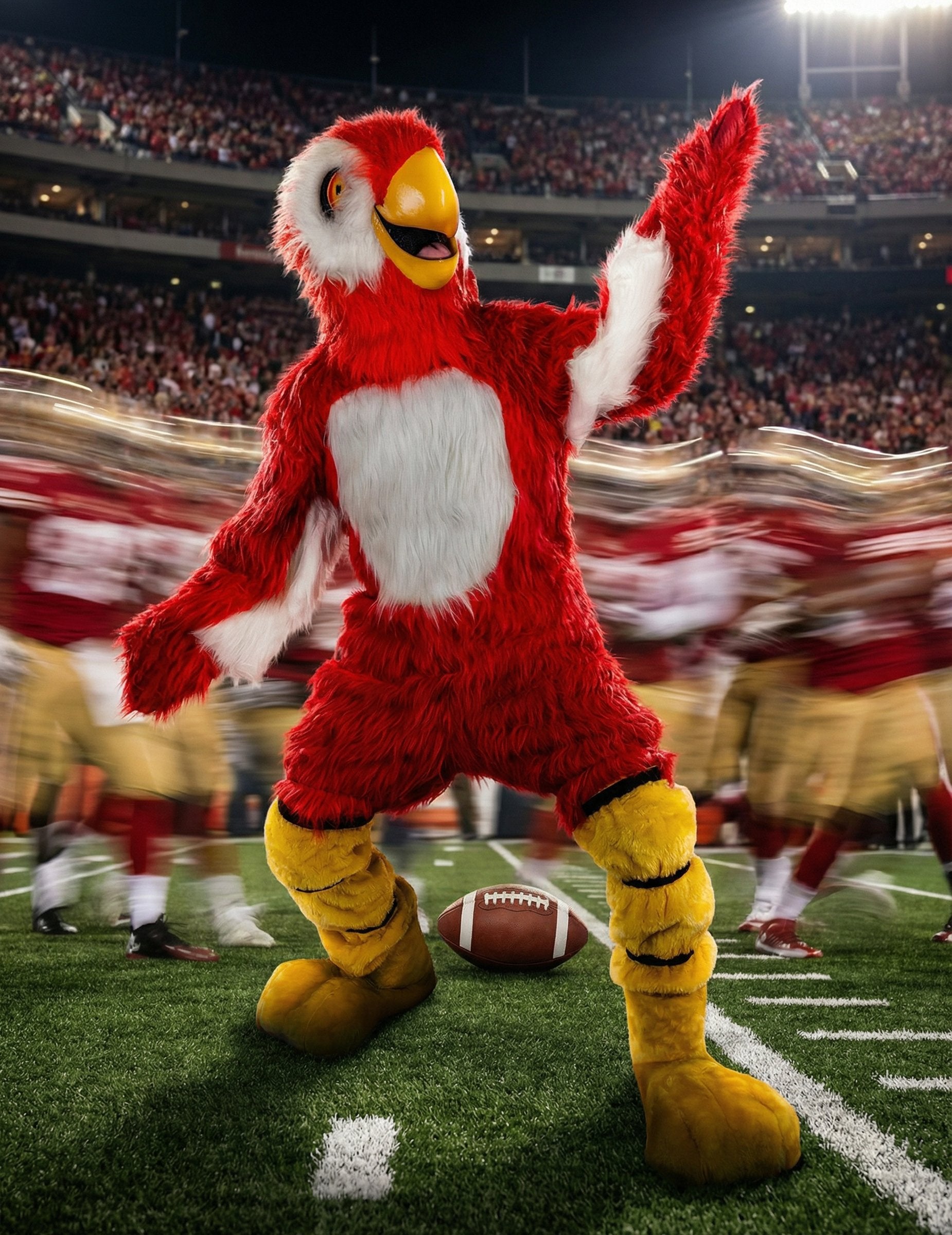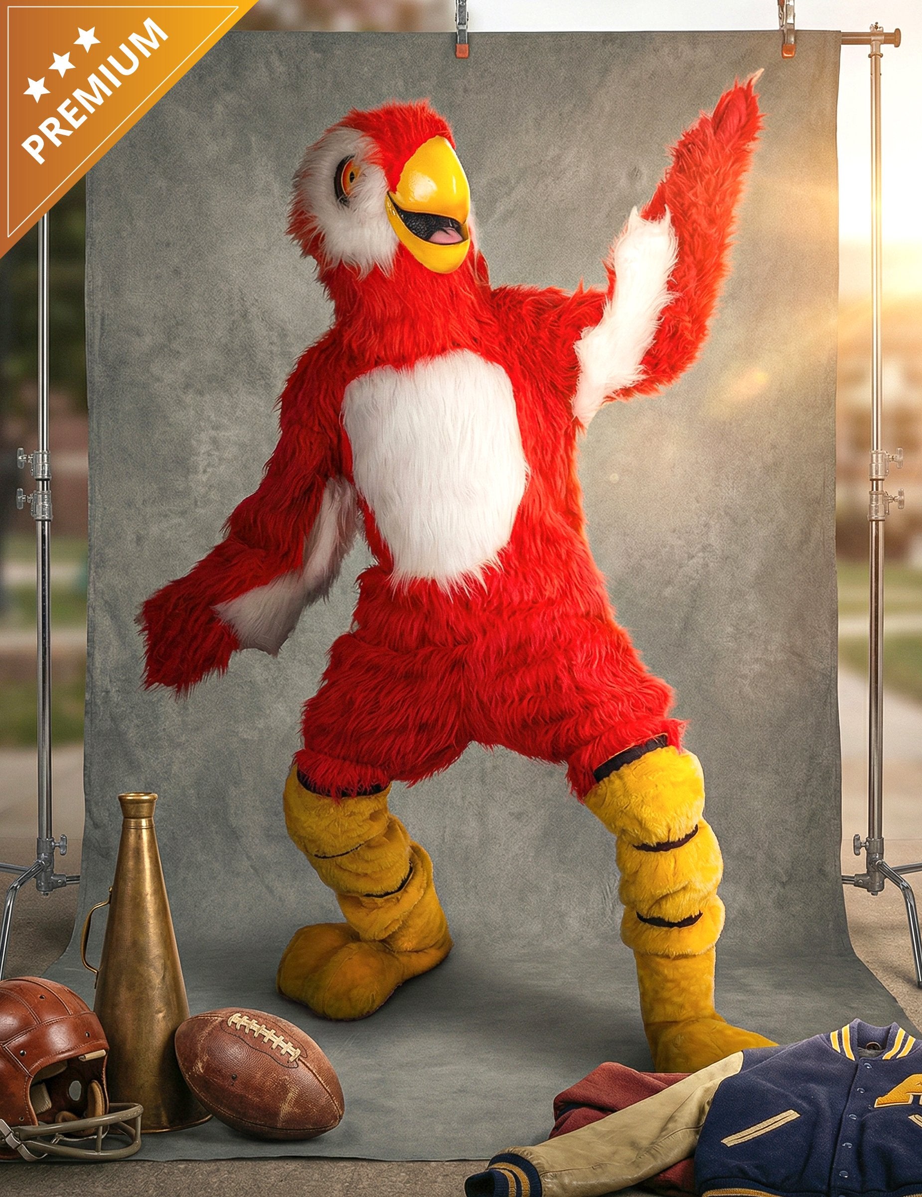 Ta maskota za odrasle, rdeča papiga, vključuje mehak kombinezon, veliko masko papige, rokavice in prevleke za čevlje, ki tvorijo popolno obleko. Rdeči kombinezon ima na prsih veliko belo ploščo, ki spominja na pravo, pisano papigo. Maska prikazuje veliko glavo z izstopajočim rumenim kljunom in izraznim očesom. Rokavice in prevleke za čevlje podaljšajo učinek na tla in ustvarijo enoten videz. Popoln kostum maskote, ki bo karnevalu, rojstnodnevni zabavi ali prazničnemu dogodku dodal kanček barve.