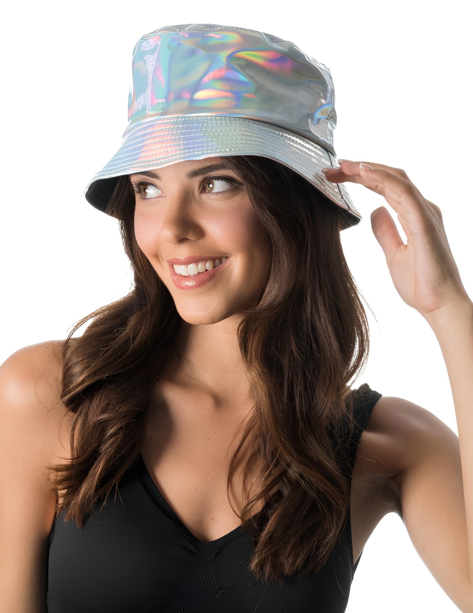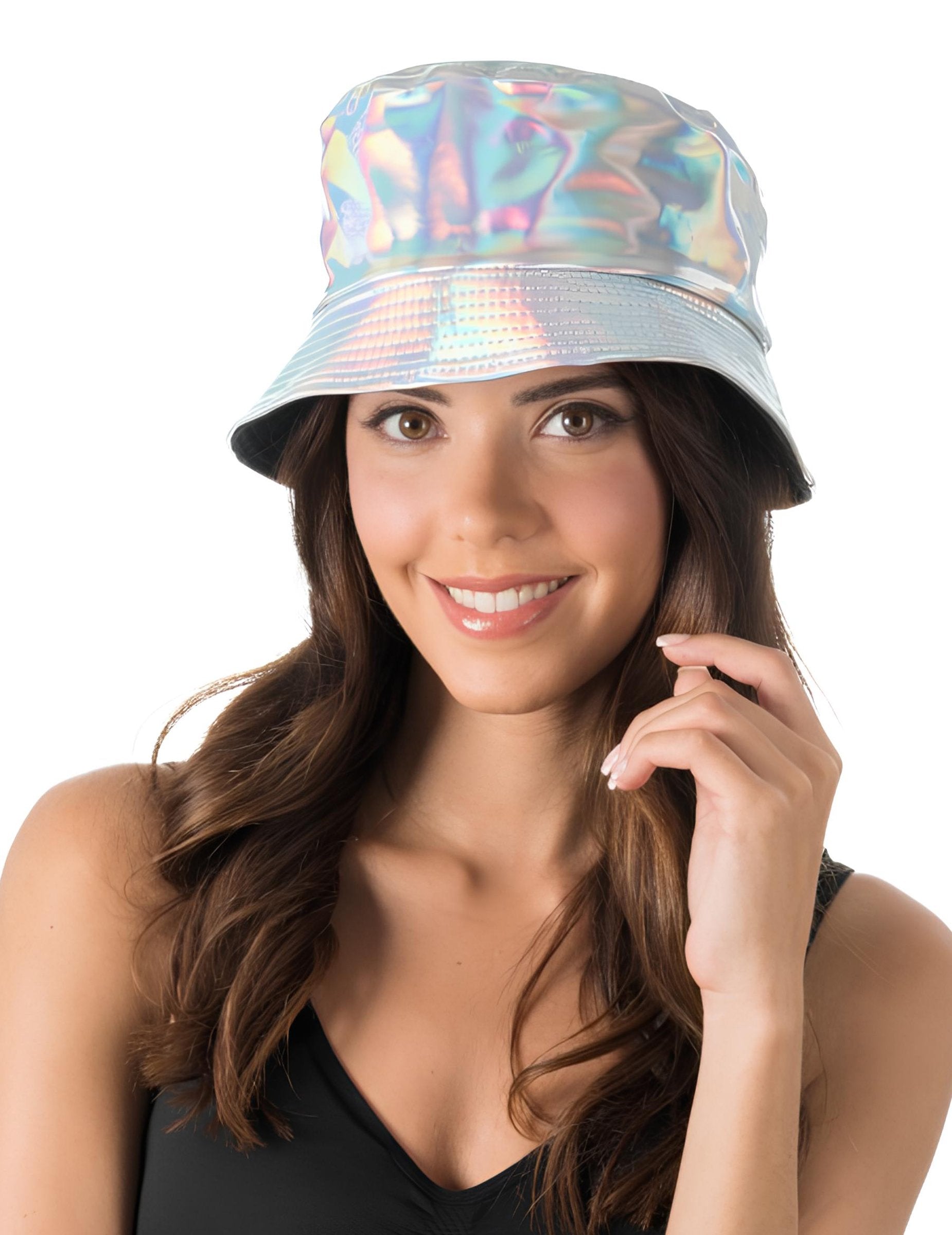 Ta srebrno irisirani bob klobuk za odrasle prinaša sijočo barvo in bleščeč učinek, ki takoj pritegne pozornost. Njegov srebrni odtenek z mavričnimi odsevi daje moden videz, popoln za festivale, poletne zabave in fantovščine ali dekliščine. Njegova mehka oblika ščiti pred soncem in je hkrati prijetna za nošenje ves dan. Preprost dodatek, ki zlahka doda bleščečo noto poletni opravi.