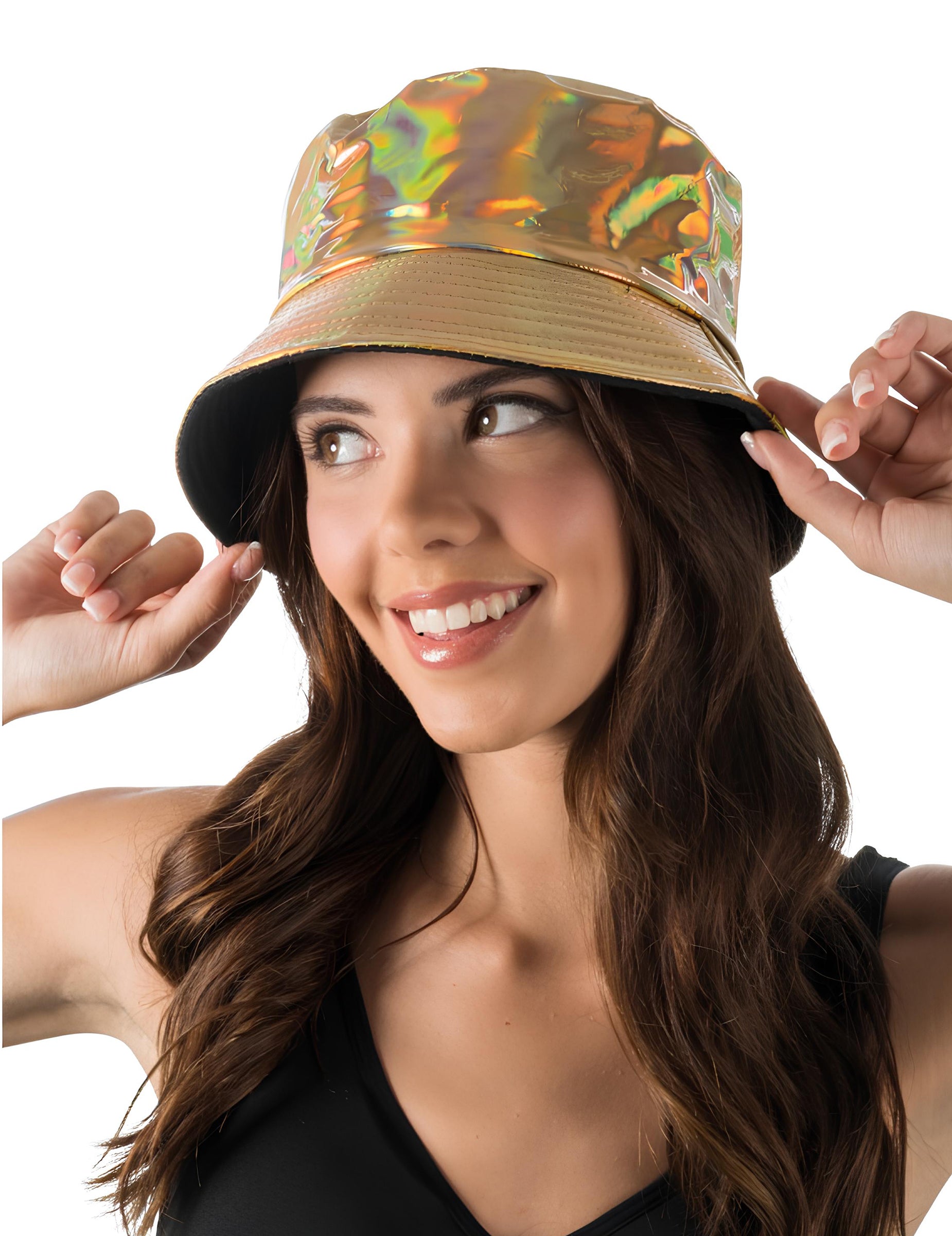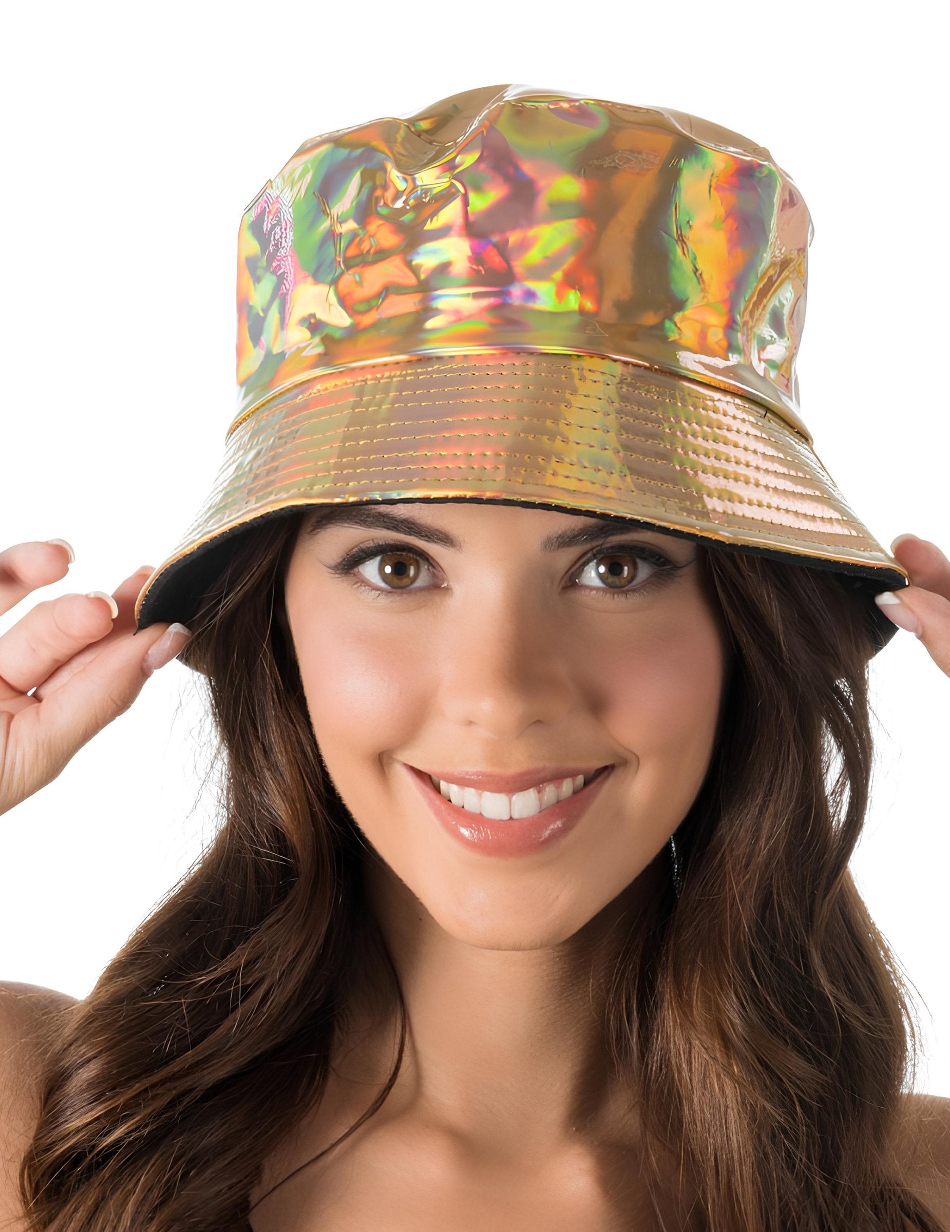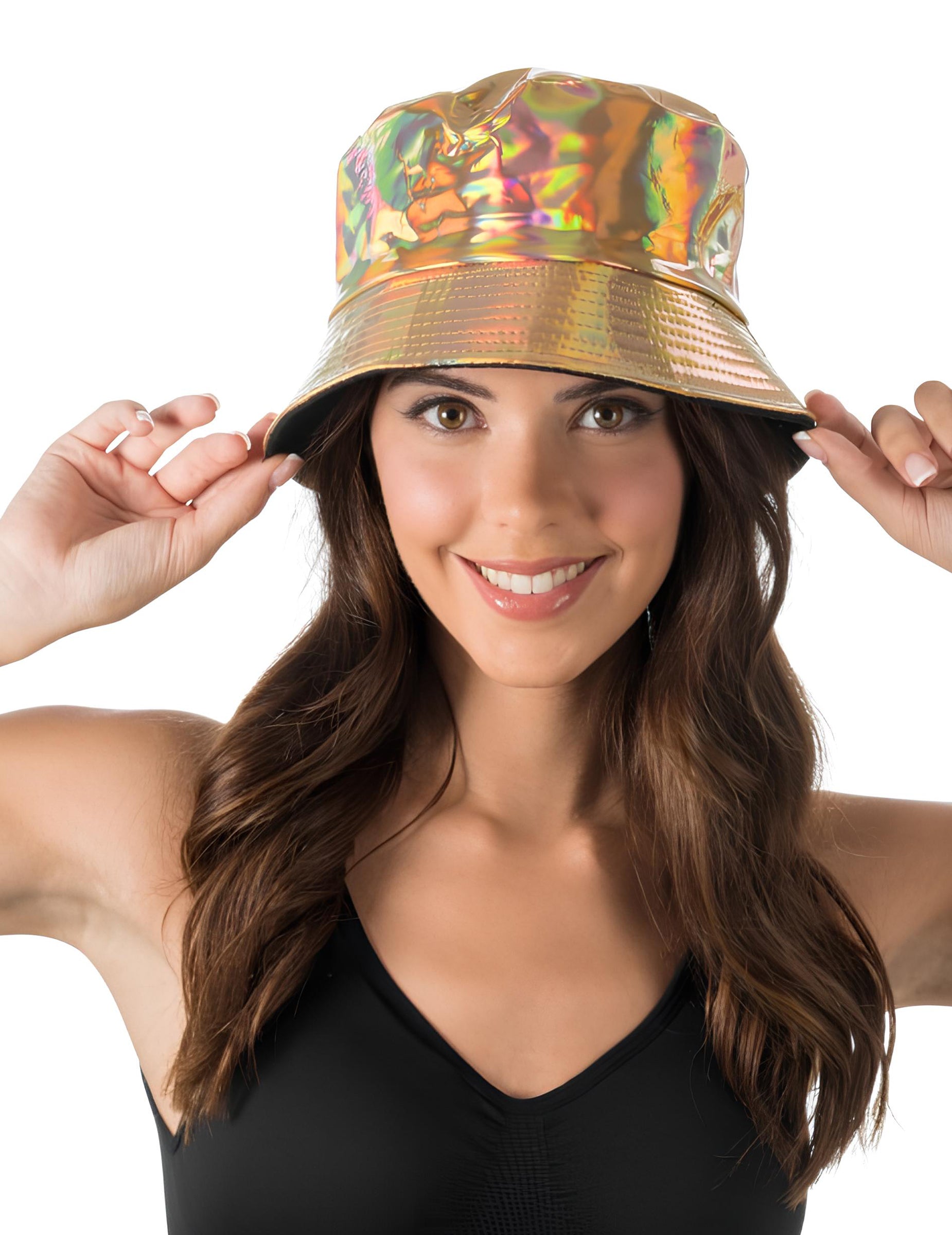 Ta zlat bleščeč iridescenten klobuk za odrasle ponuja živahno barvo in sijoč učinek, ki takoj pritegne pogled. Njegov zlati odtenek z mavričnimi odsevi daje prazničen videz, idealen za festivale, poletne zabave in dekliščine. Njegova mehka oblika ščiti pred soncem, hkrati pa je prijeten za nošenje ves dan. Preprost dodatek, ki doda svetleč pridih poletni opravi.