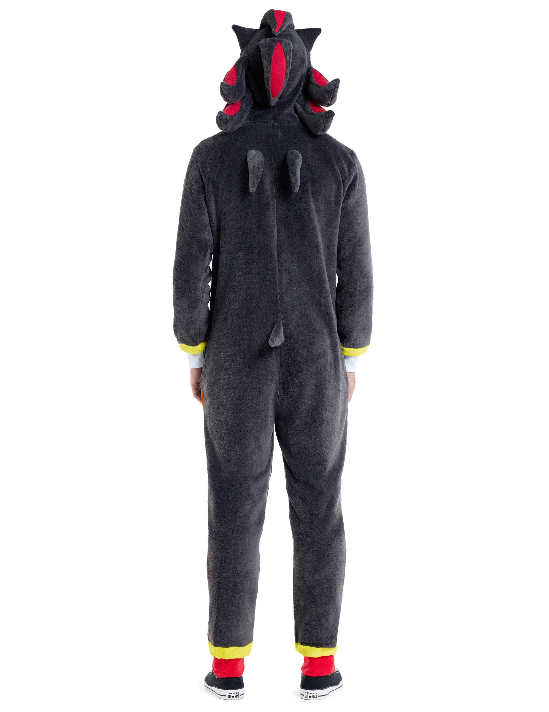 Ta odrasli kombinezon Shadow Sonic je v temno črni barvi z rdečimi in rumenimi poudarki, ki zvesto ujame slog ikoničnega lika Sonica. Kapuca z značilnimi konicami se odlično dopolnjuje s Shadowovim videzom, zaradi česar je idealna za sproščanje ali dodajanje pridiha osebnosti tematski zabavi. Podloga iz brušene flisa zagotavlja mehak in udoben občutek. Stranski žepi omogočajo shranjevanje bistvenih stvari pri roki, kengurujev žep spredaj pa doda praktičen in ležeren pridih tej udobni obleki.