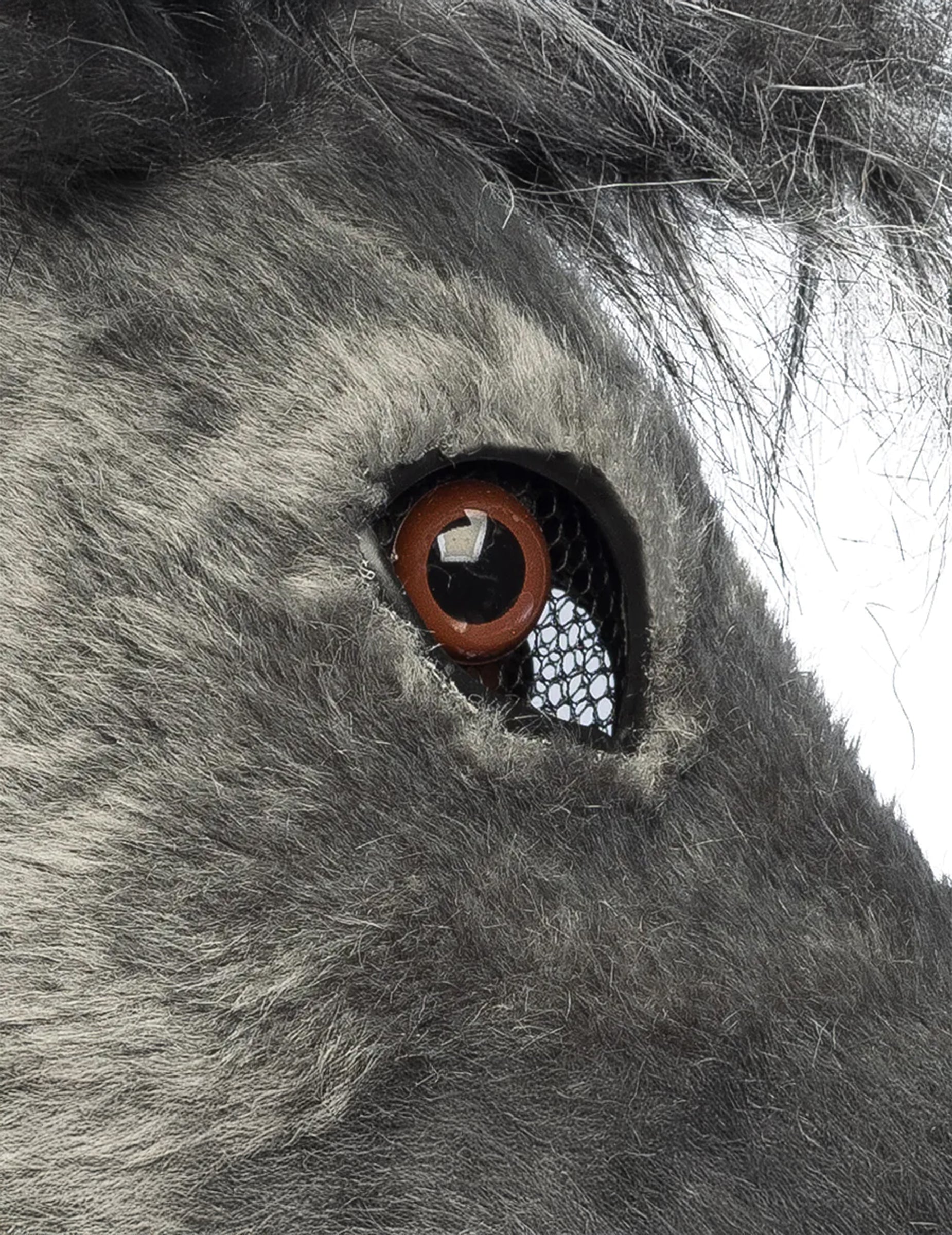 Ta polmaska iz pliša v obliki osla za odrasle prinaša zabaven in zelo prepoznaven videz zahvaljujoč podolgovati obliki in velikim, mehkim ušesom. V celoti je prekrita z mehkim plišem, ima jasno viden svetel gobec in skrbno izdelane podrobnosti, ki poudarjajo njen živalski videz. Mrežasti del pred očmi omogoča udobno vidljivost, hkrati pa ohranja učinek popolne maske. Je lahka in enostavna za nošenje ter takoj pričara oslovsko identiteto za pust ali tematske zabave v kostumih z živalsko tematiko.