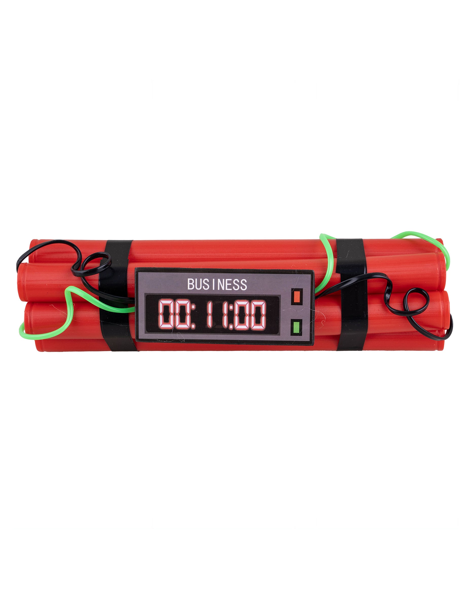 Ta Lažna dinamita s časovnikom je v celoti zasnovana kot rekvizit za scensko uporabo, s tremi rdečimi palicami, povezanimi z barvnimi kabli, in lažnim digitalnim zaslonom ki prikazuje odštevanje.
