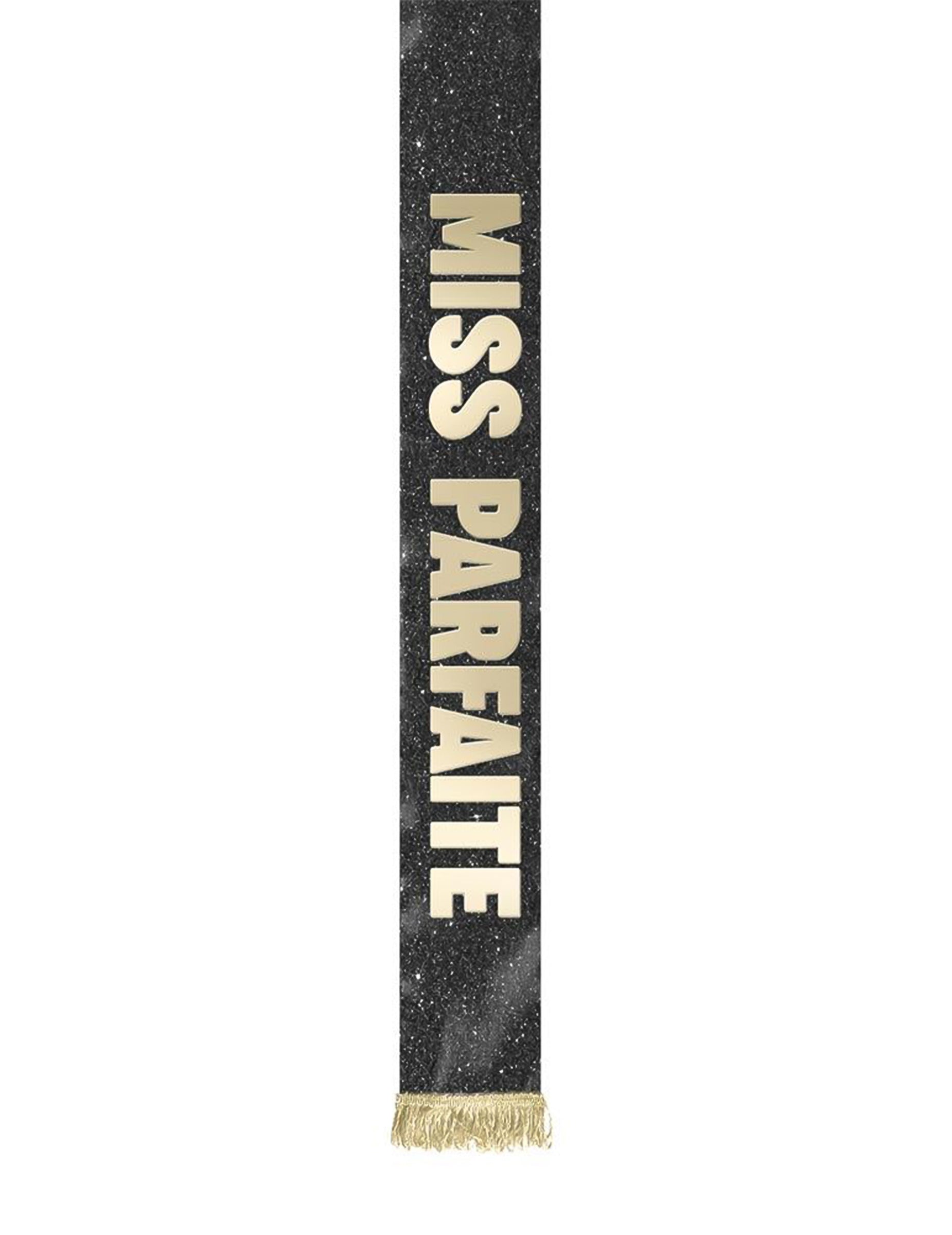 To Šal z bleščicami Miss Perfect zapelje ga bleščeča tkanina in prefinjen videz, z napisom "Gospodična Popolna"v zlati barvi, popolnoma poudarjena po celotni dolžini."