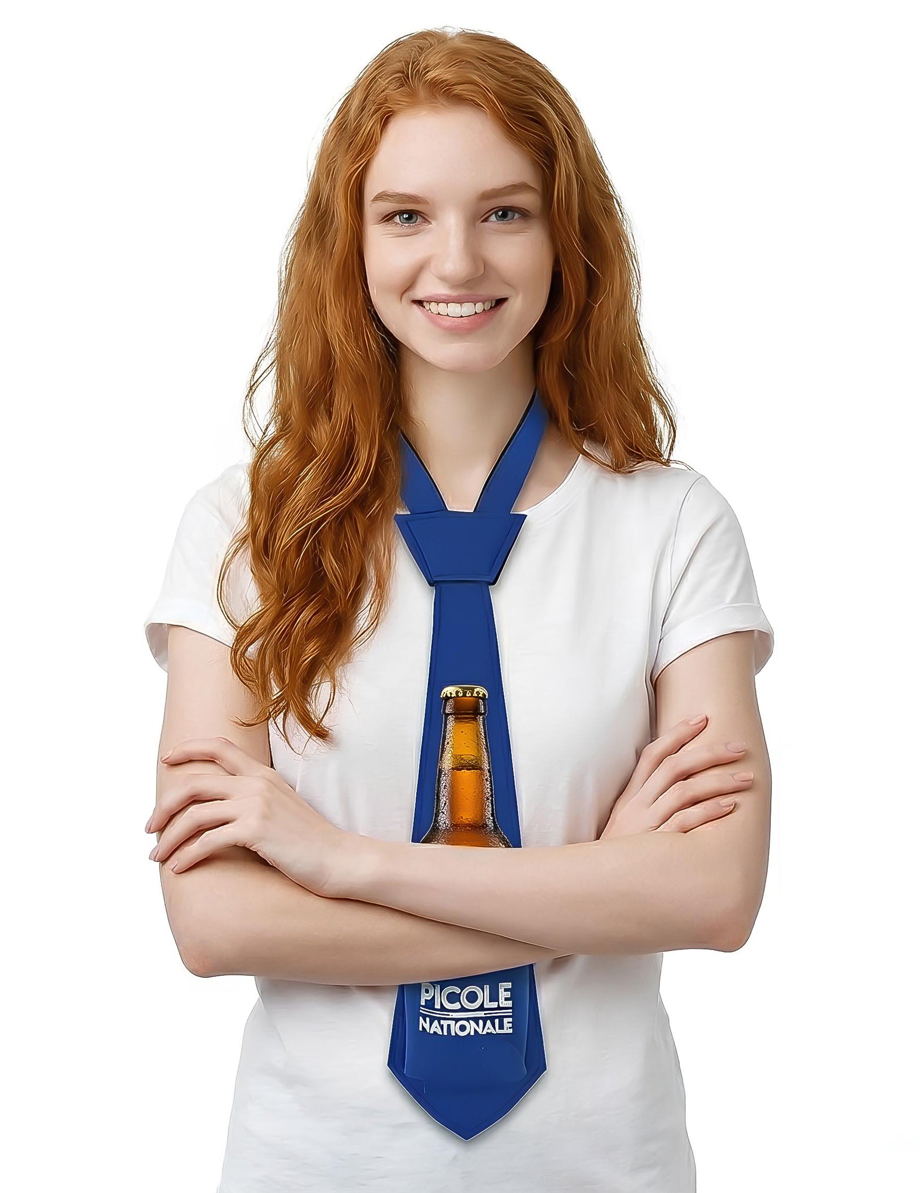 Ta kravata proti žeji Picole Nationale prinaša humorno noto s svojo preoblikovano klasično obliko in vgrajenim žepom, ki omogoča, da vanjo pospraviš pločevinko ali majhno stekleničko. Njena modra barva in izviren napis poudarjata praznično vzdušje, zato je popolna za popestritev aperitiva s prijatelji, piknika ali tematske zabave. Je lahka in enostavna za nošenje, zato postane idealen dodatek, da imaš pijačo vedno pri roki in hkrati izžarevaš dobro voljo.