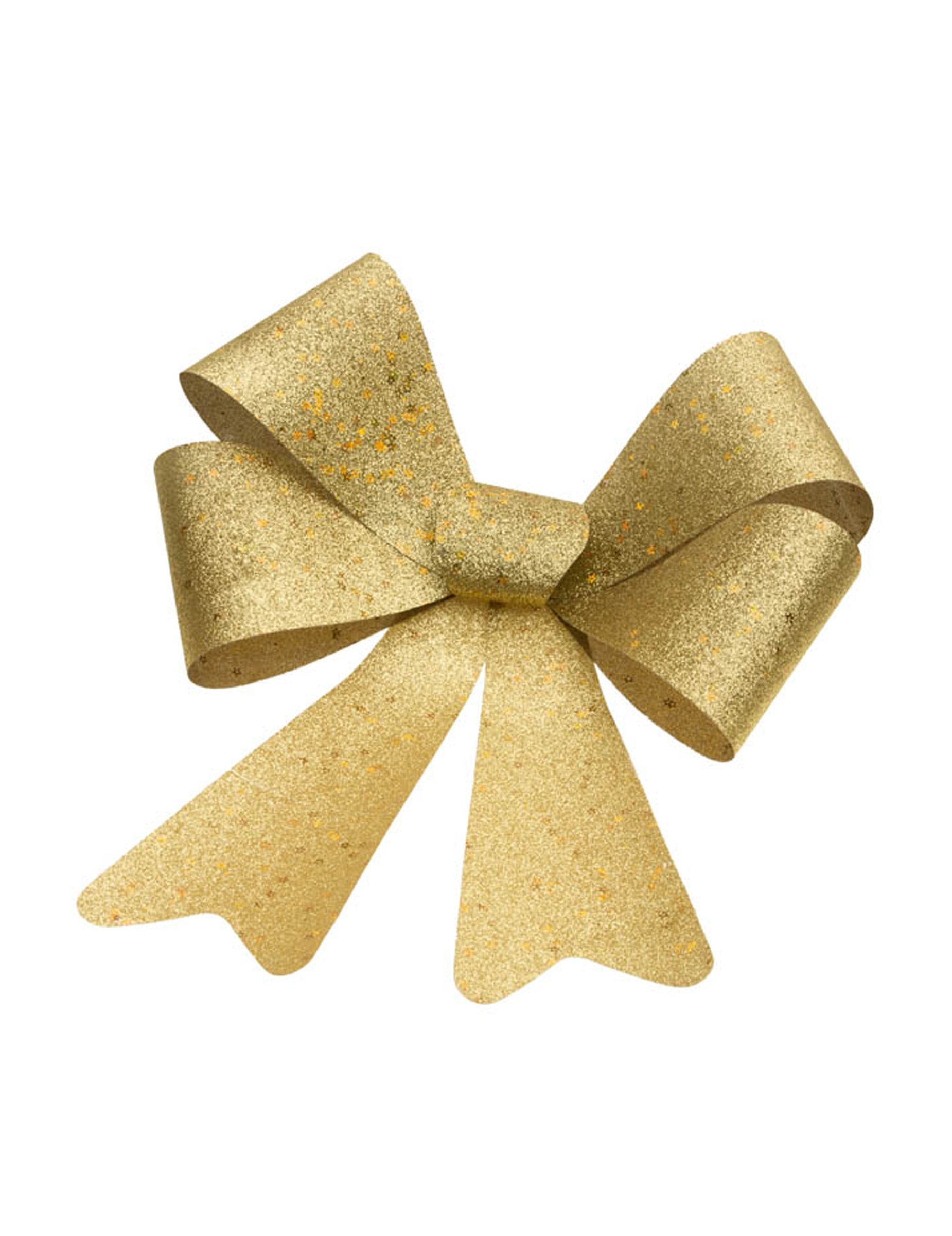 Ta bleščeča zlata pentlja izstopa s svojimi impresivnimi merami 36 x 51 cm, idealna za privabljanje pozornosti na večji dekorativni površini. Njena prevleka z zlatimi bleščicami daje preprost in sijoč lesk. S širokimi trakovi in prostorno obliko doda volumen, hkrati pa jo je enostavno vključiti v scenografijo, ne da bi preobremenila celoto. Popolna je za zabavo, tematsko dekoracijo ali bogato zavijanje, kjer bo dodala čudovit zlat pridih in naredila vaš dekor še bolj usklajen, topel in prijeten za občudovanje.