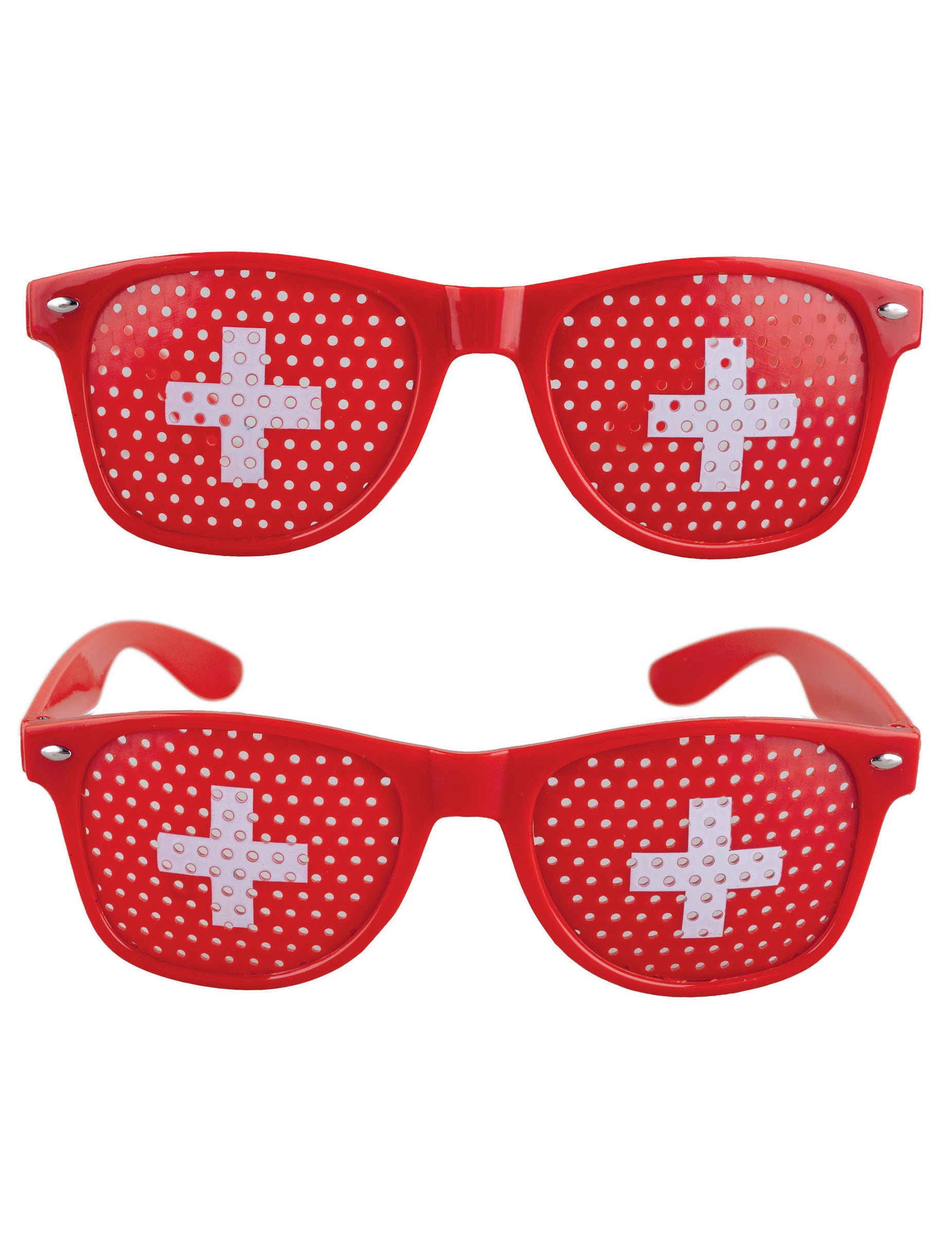 Ta zabavna očala imajo rdeč okvir in stekla, okrašena z švicarsko zastavo ter značilnim belim križem.
