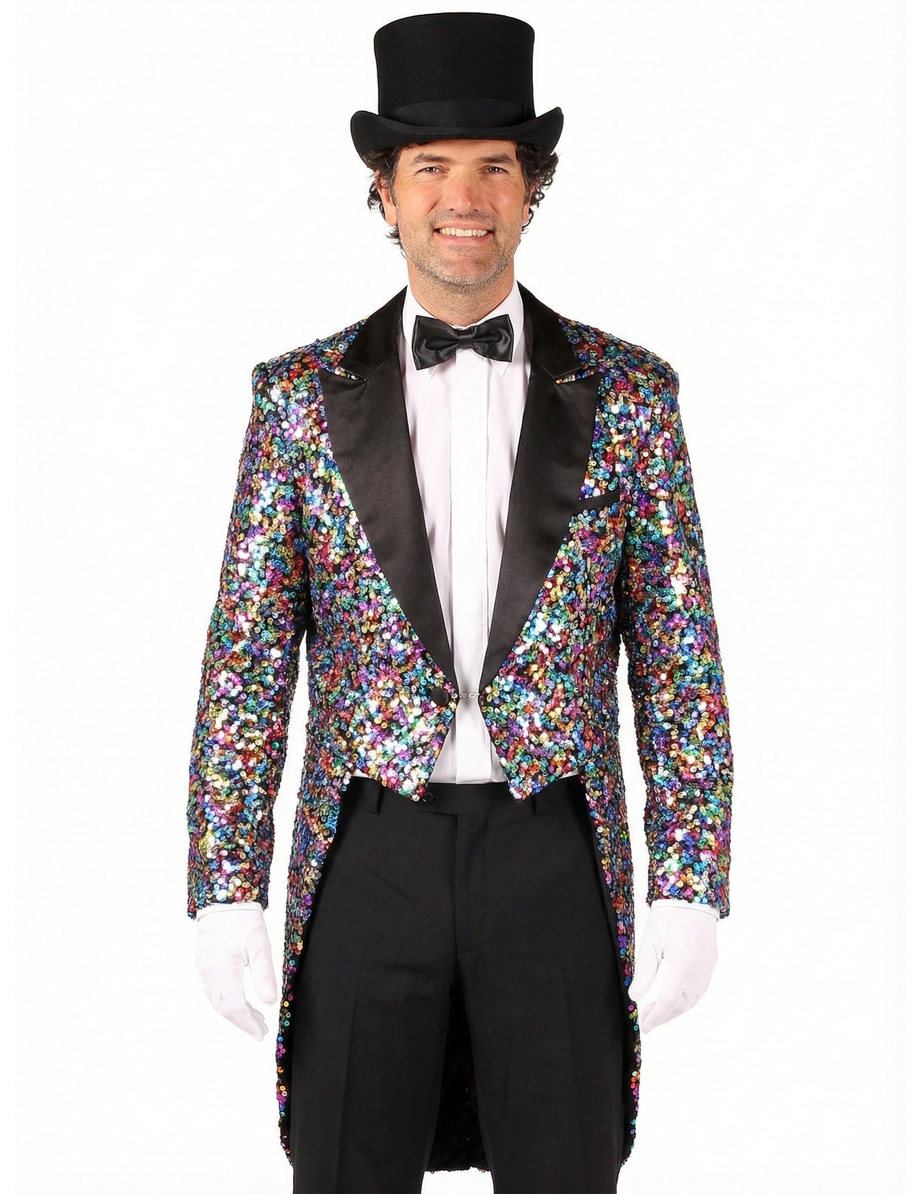 To Moški večbarvni bleščeči karnevalski kostum pritegne vse poglede in vsakemu videzu doda spektakularen videz.