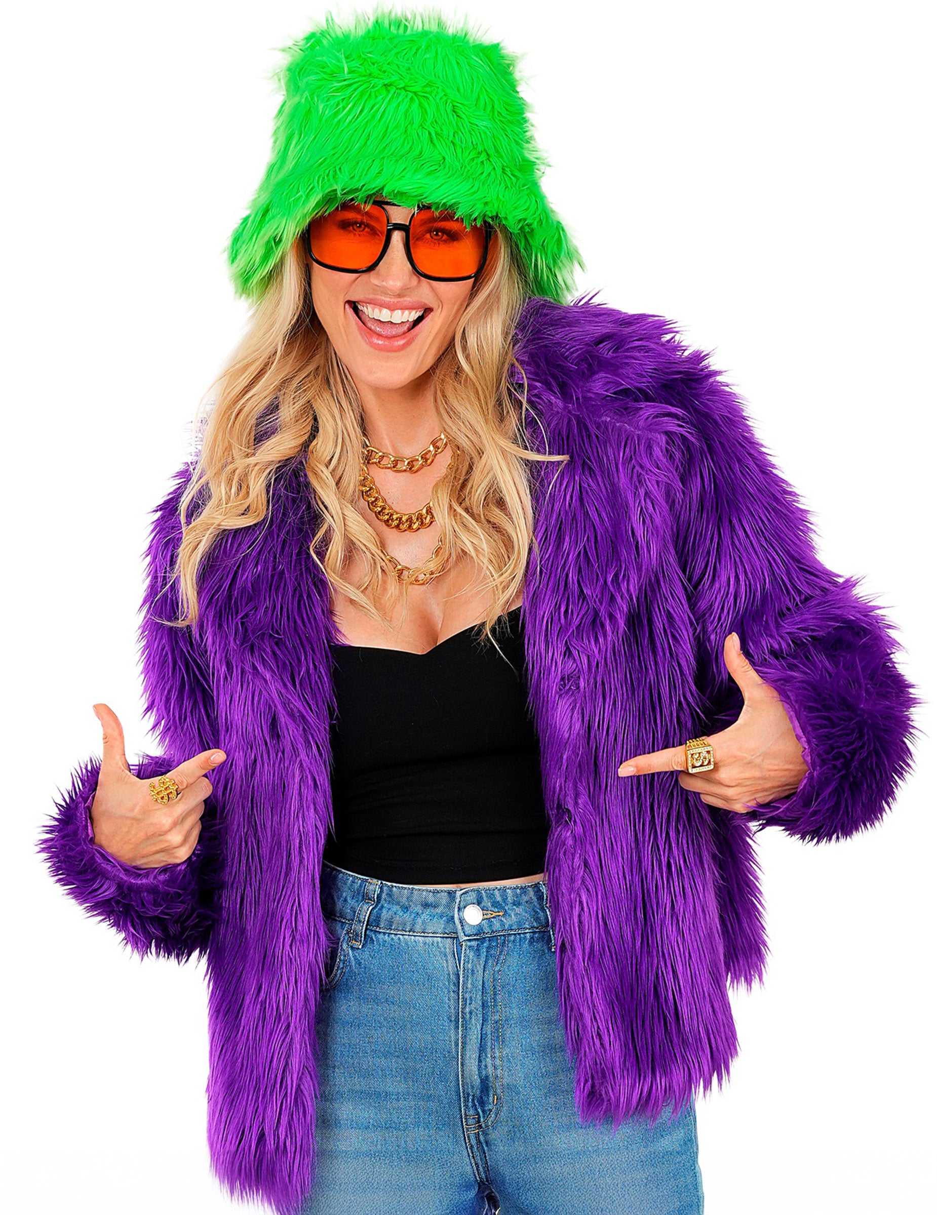 Vijoličen plašč iz umetnega krzna za odrasle je primeren za Karneval, THE Novo leto, a disko večer ali tematsko kostumsko zabavo.