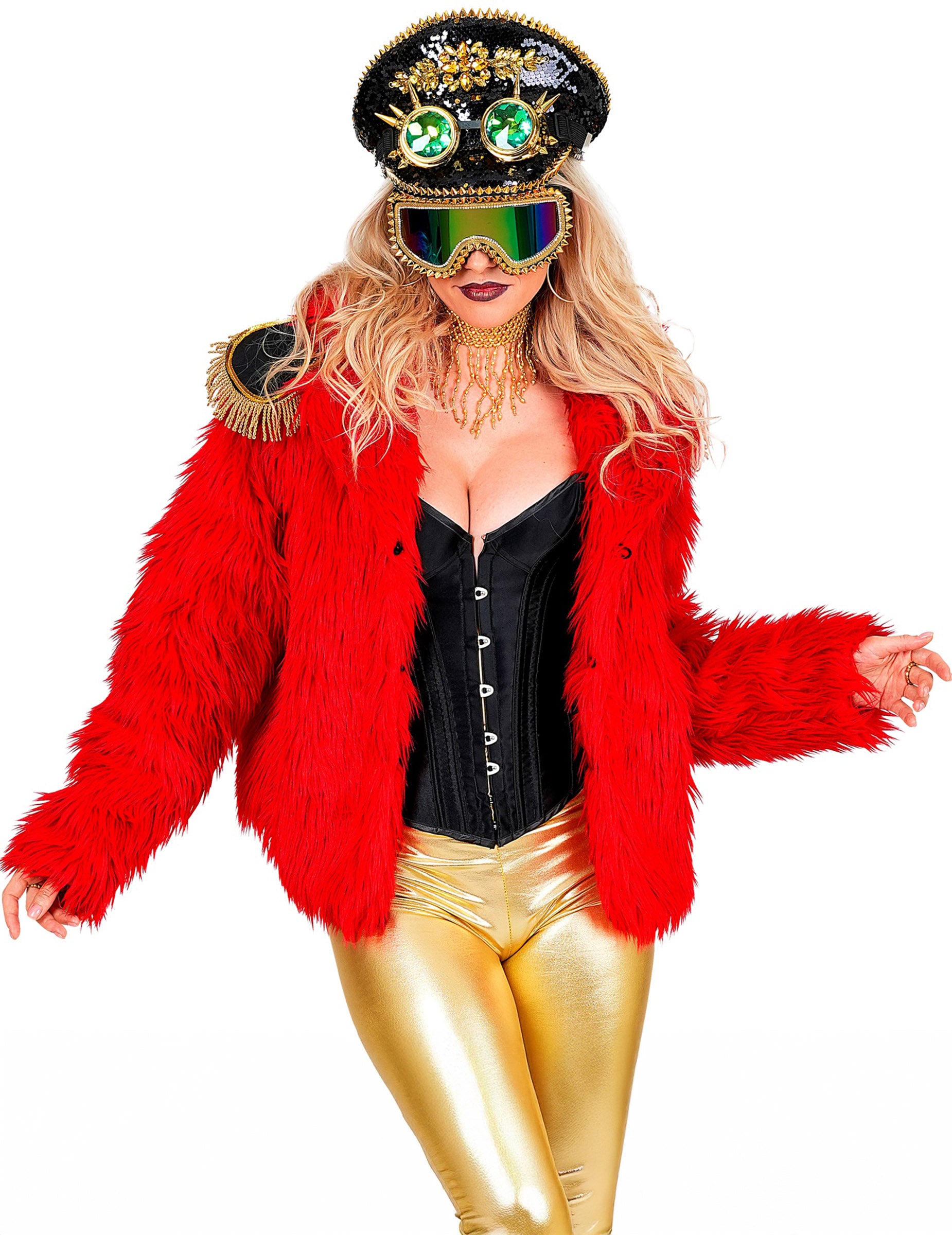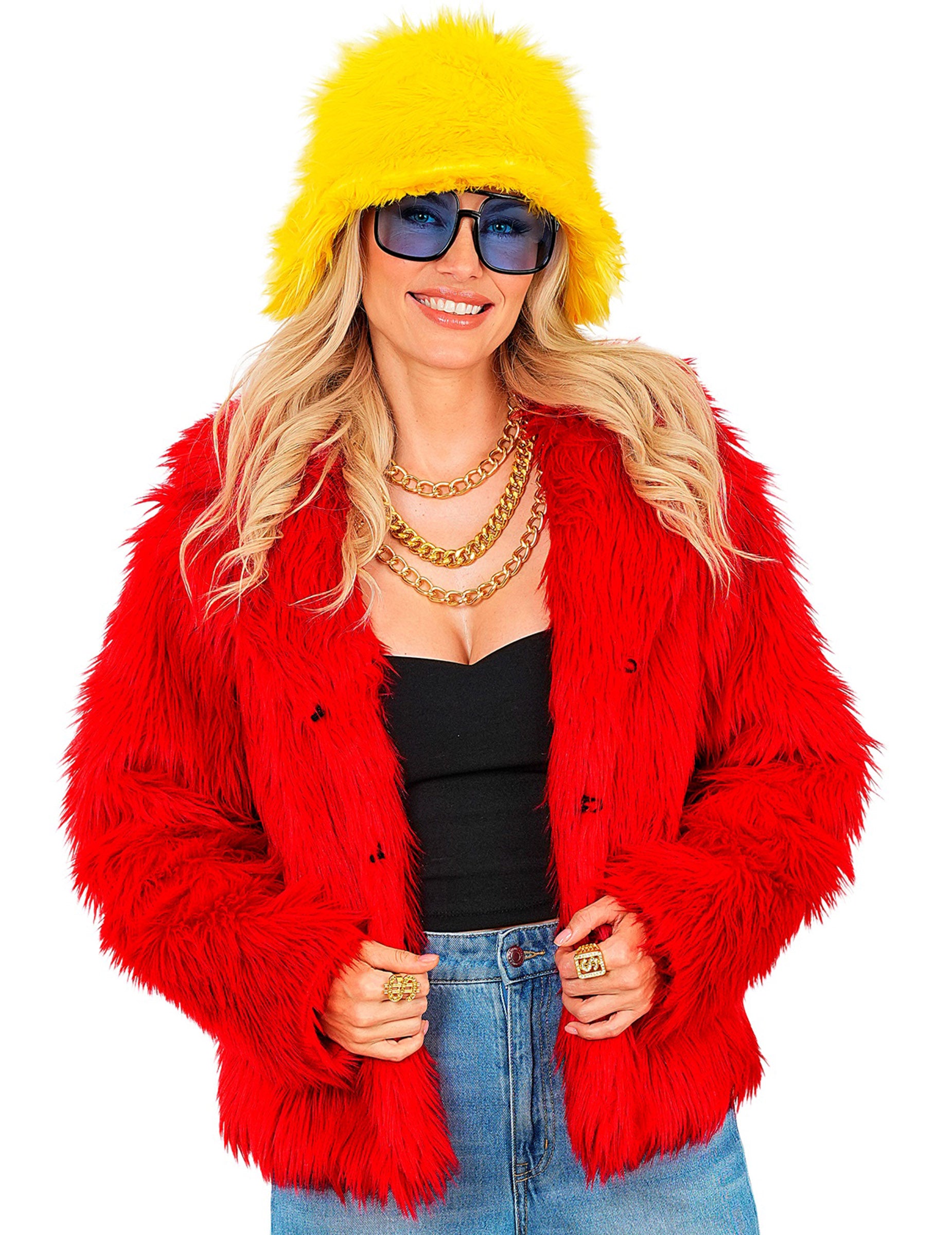 Rdeč plašč iz umetnega krzna za odrasle je odličen dodatek k obleki za Karneval, a disko večer, THE Novo leto ali tematsko kostumsko zabavo.