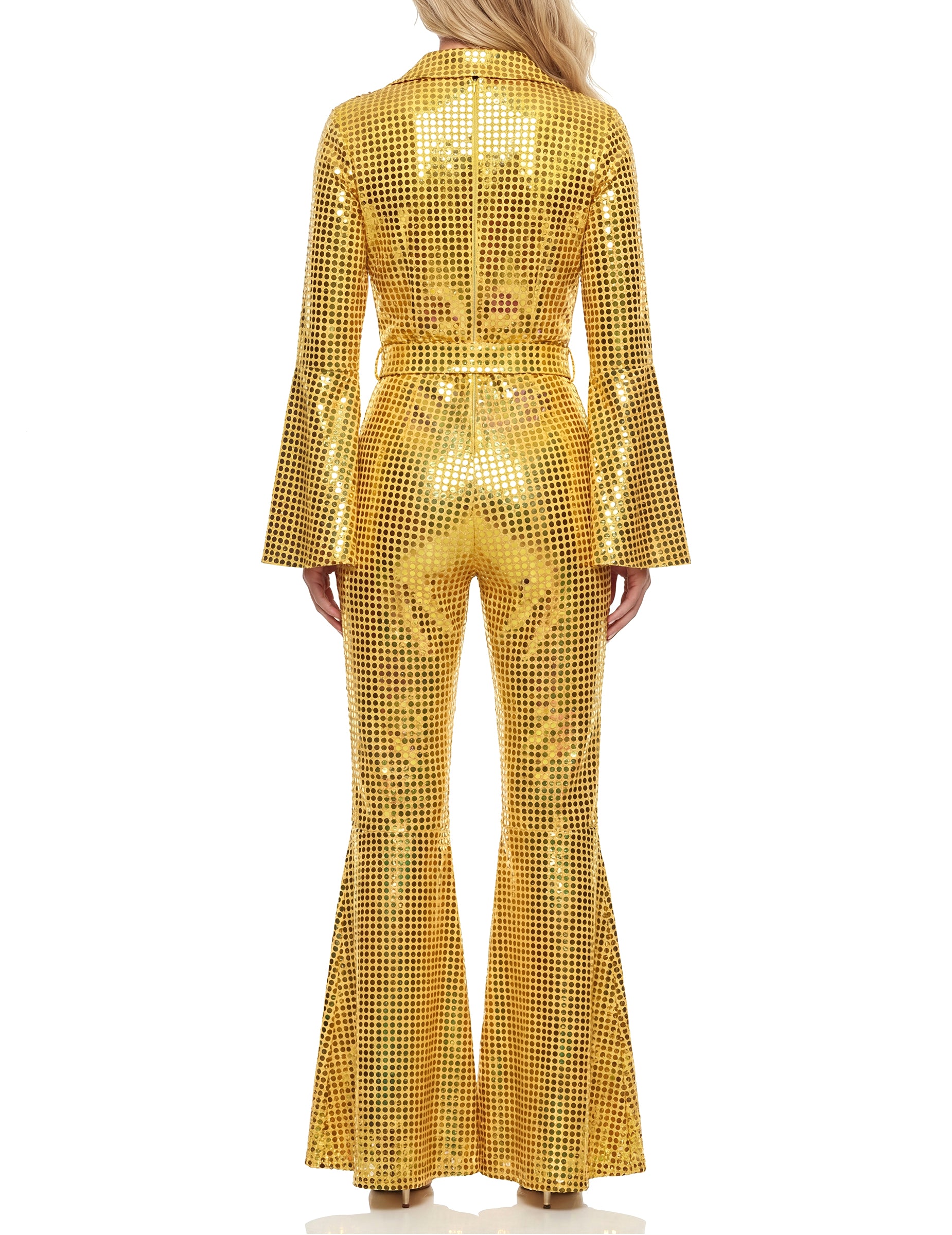 Rumeni disco kombinezon za ženske je primeren za pust, disco zabavo, zabavo na temo 70. let, rojstni dan ali zabavo v kostumih.