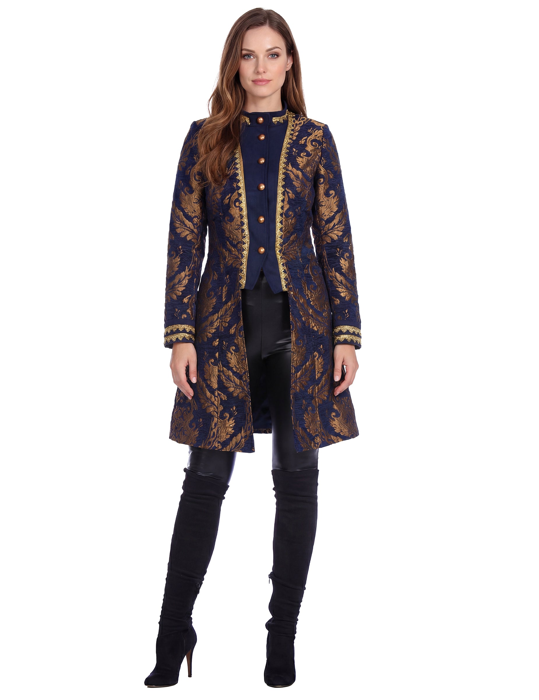 La veste baroque brodée luxe bleue femme permet de composer une tenue inspirée de l’esthétique baroque, idéale pour une fête costumée ou un événement à thème historique.